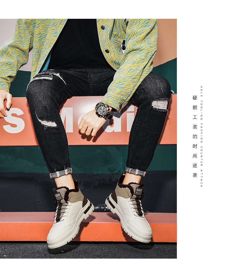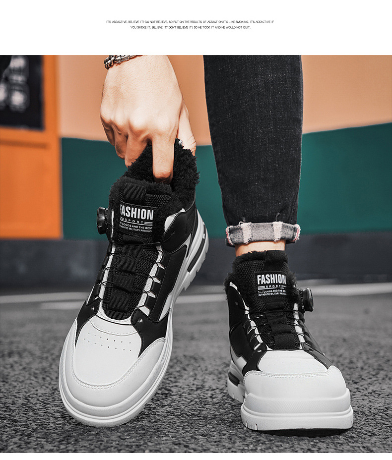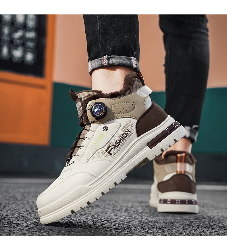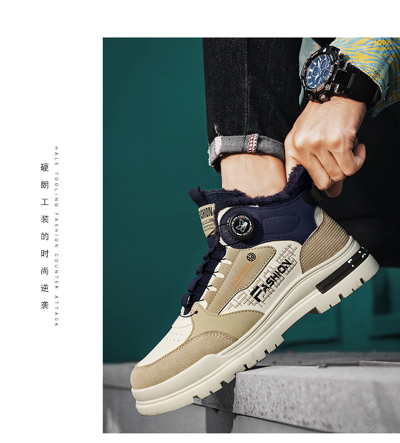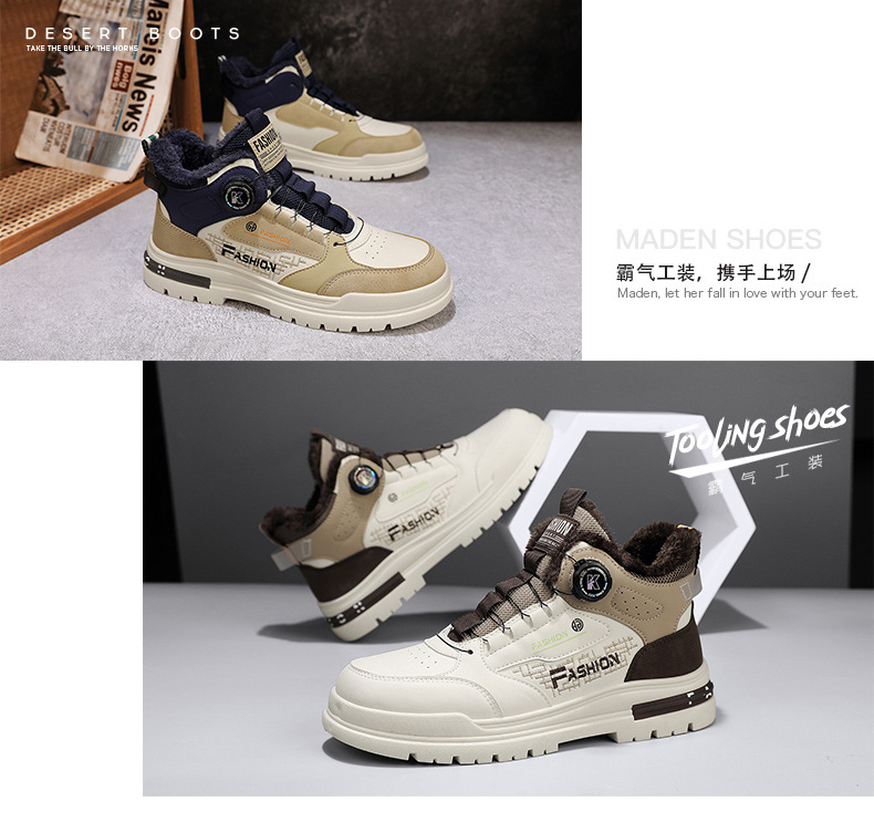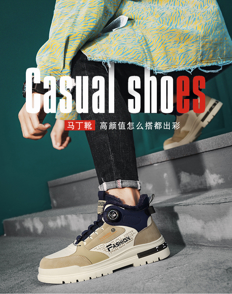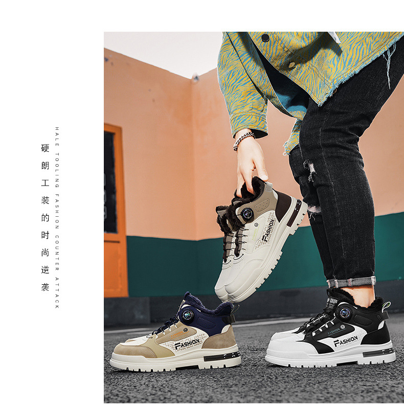 겨울 2023 새로운 남성 신발 기모 마틴 신발 남성 작업복 신발 남성 캐주얼 스포츠 코튼 신발 회전 버튼