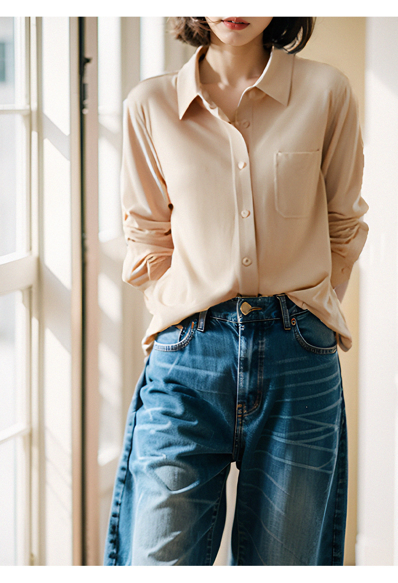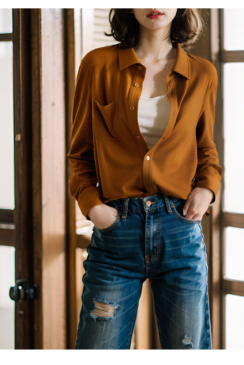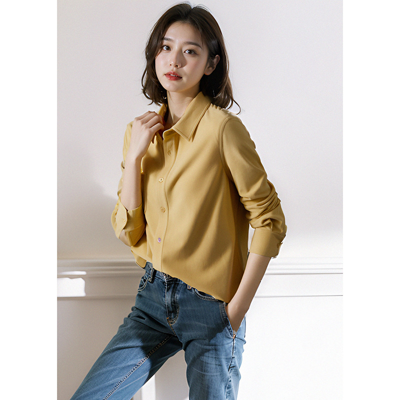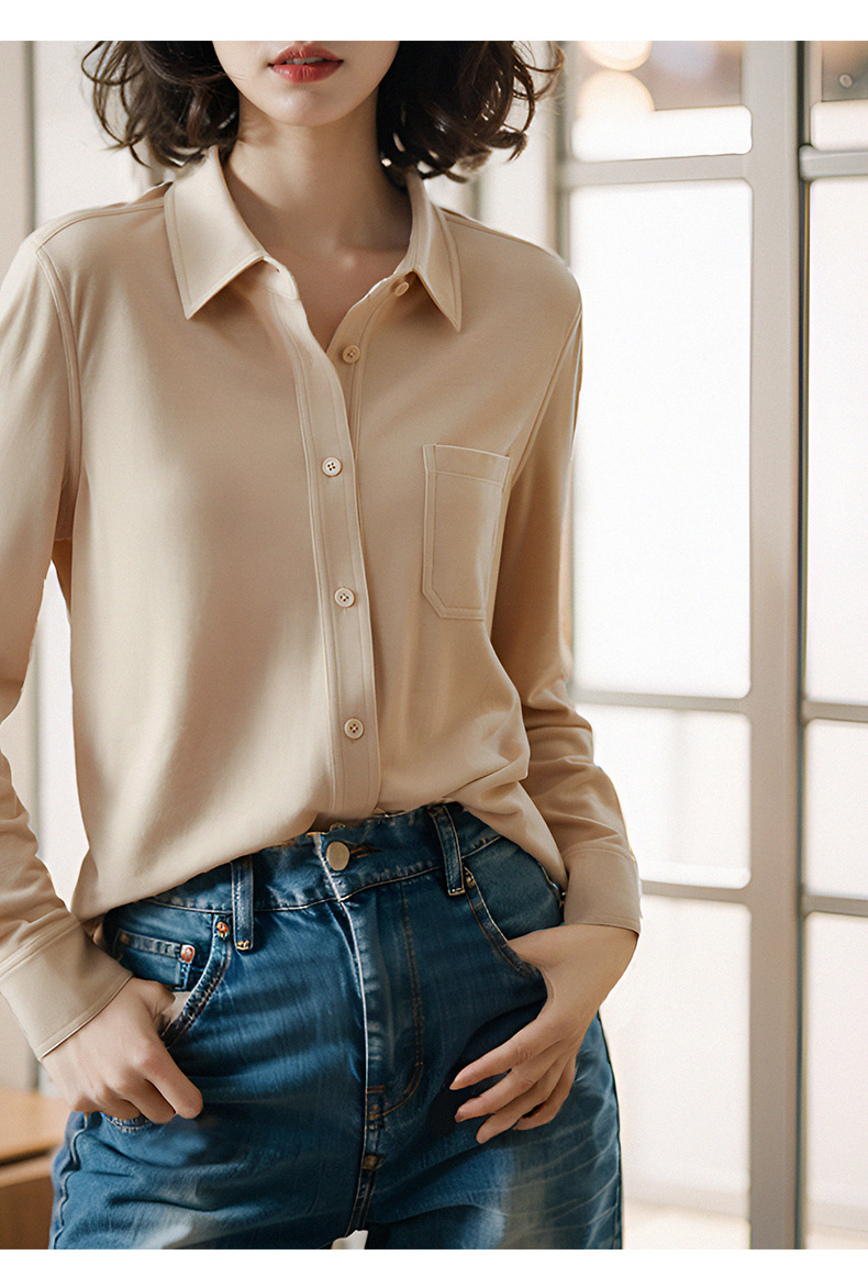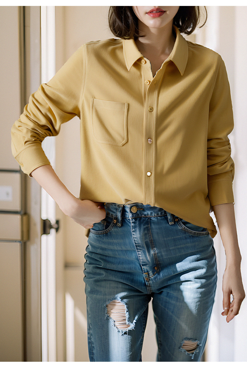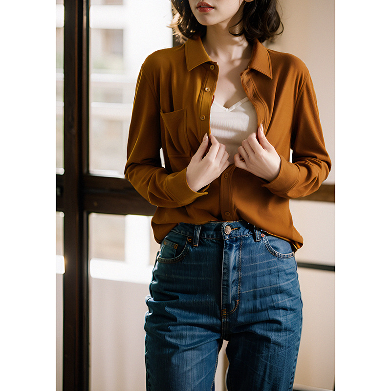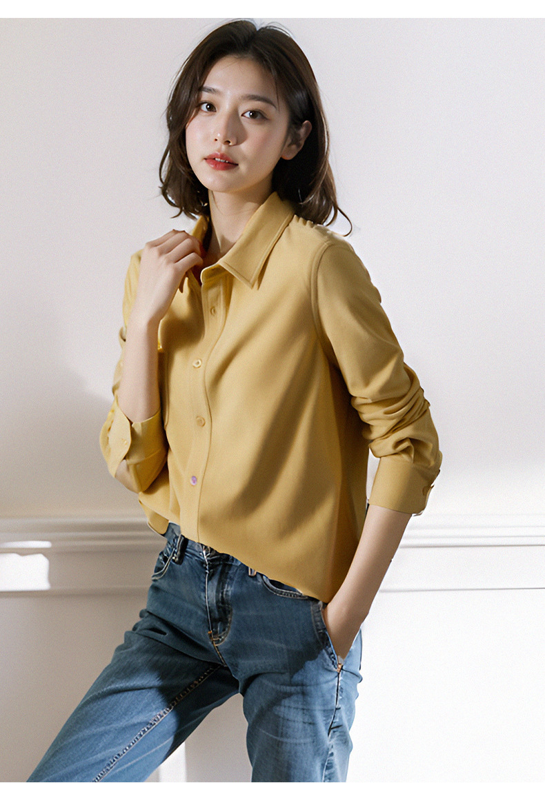 우아한 라펠 디자인의 단색 긴팔 셔츠 여성용 2025년 초봄 신상 스타일리시한 가디건 고급스러운 틈새 시장 캐주얼 상의스토어 가기