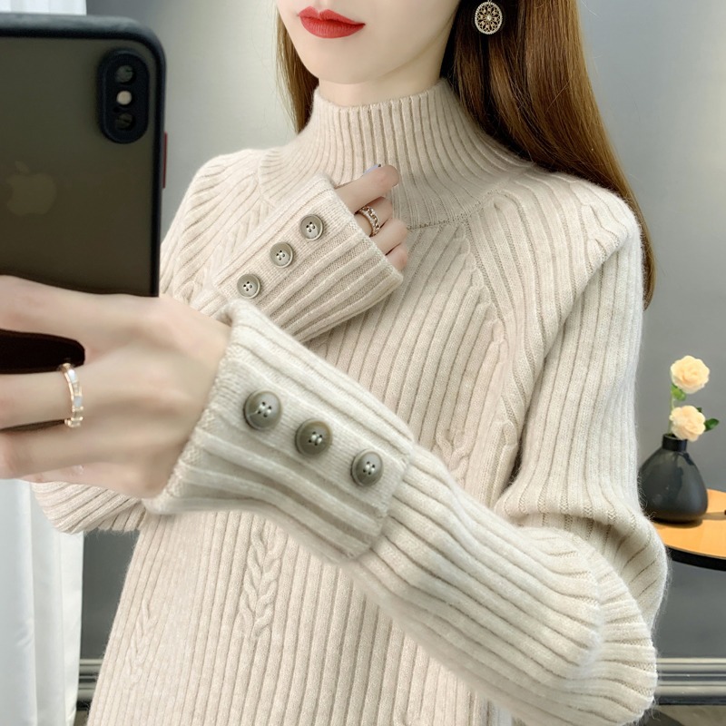 여성 하프 터틀넥 스웨터 2025 가을 신상 루즈핏 두꺼운 디자인의 세련된 숏 니트스토어 가기