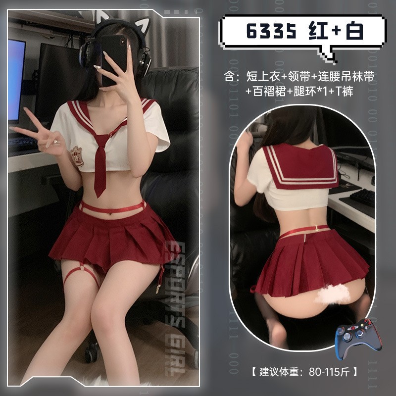• Fei Mu 6335 ◆ 순수한 욕망 학생 ◆ 빨간색과 흰색 [허리 가터 벨트와 짧은 재킷 타이