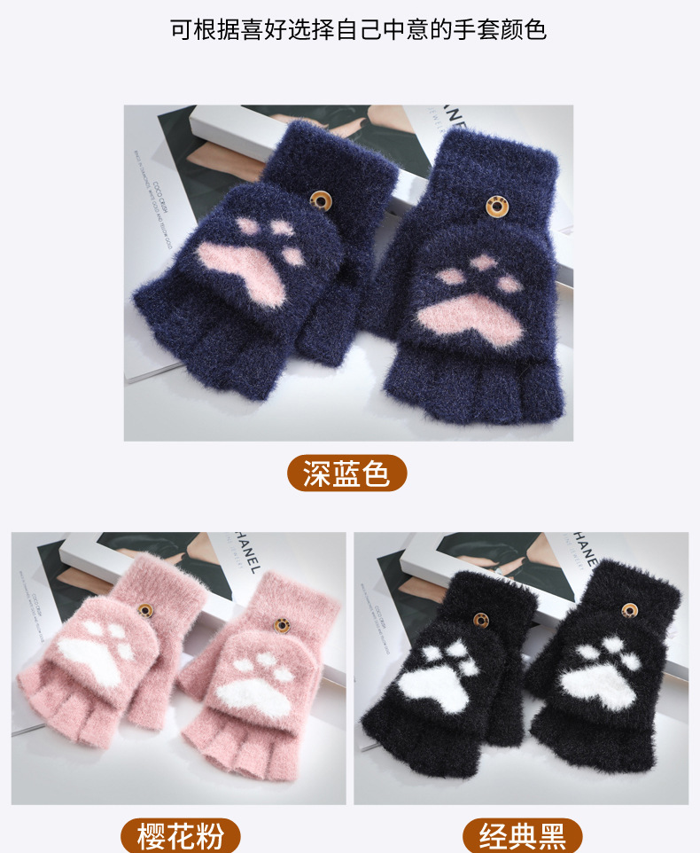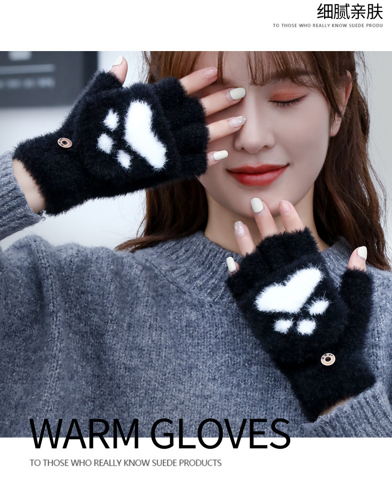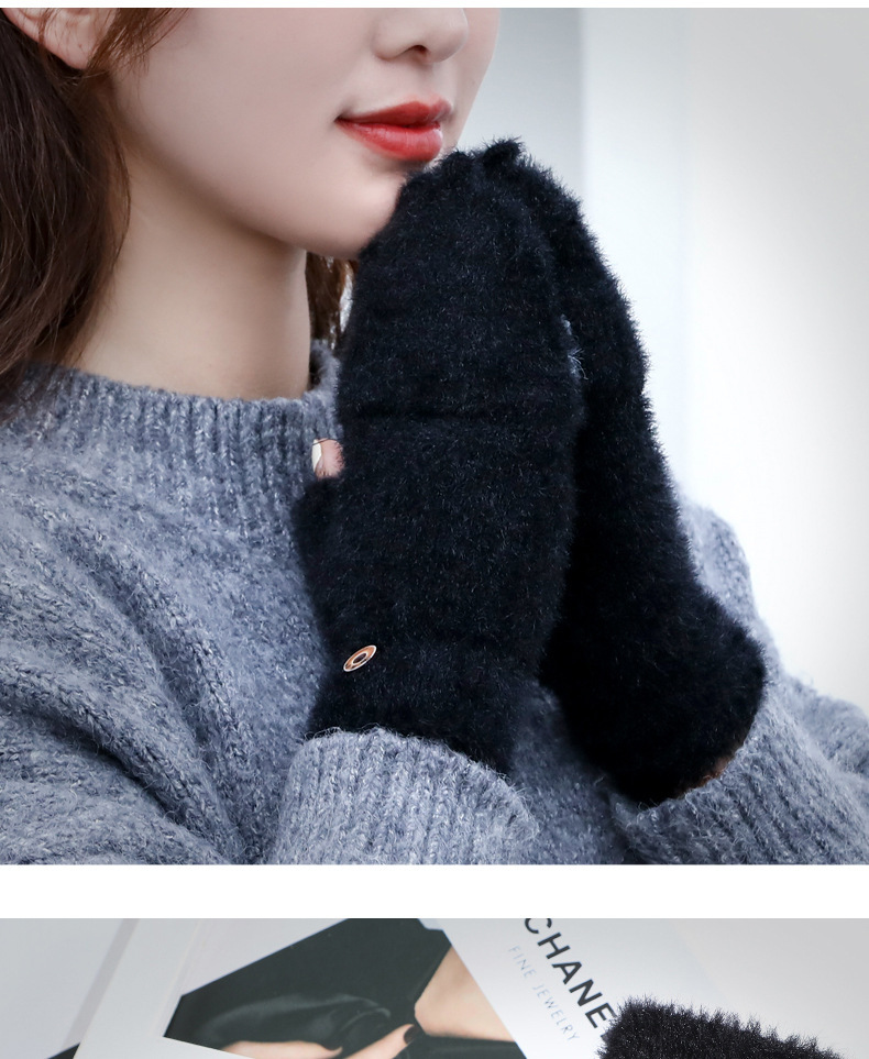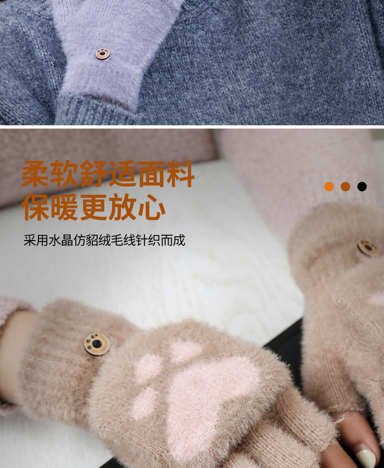 울 반 손가락 장갑 겨울 클램 쉘 따뜻한 두꺼운 새는 손가락 모조 밍크 벨벳 새로운 자카드 니트 장갑 재고 도매