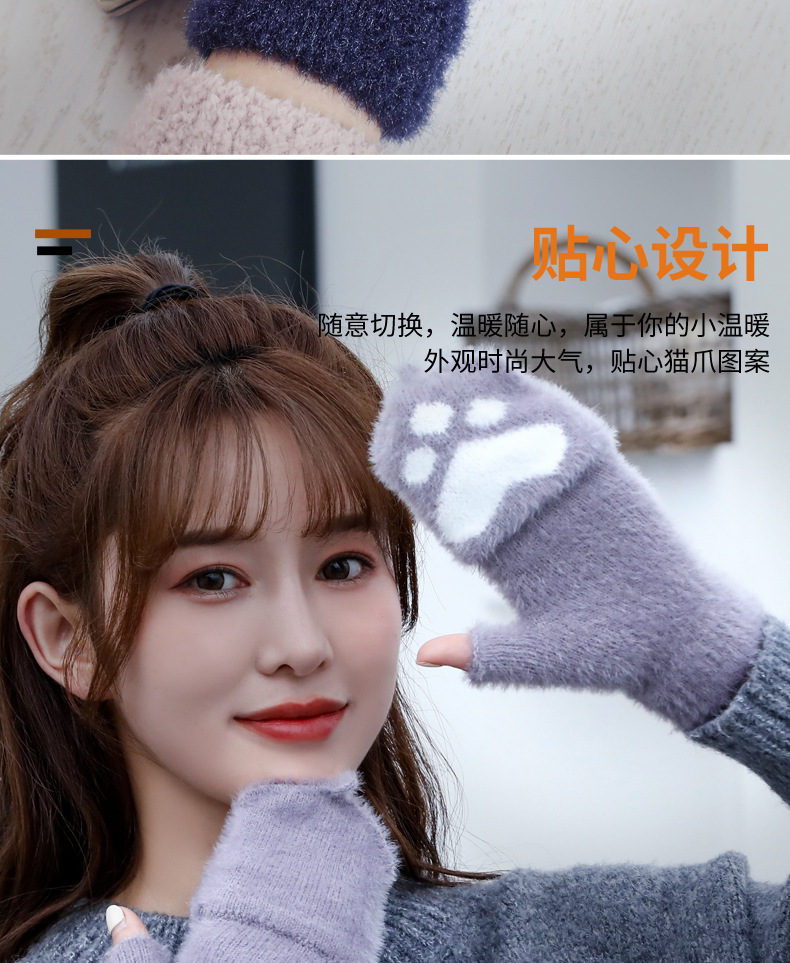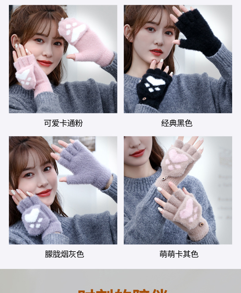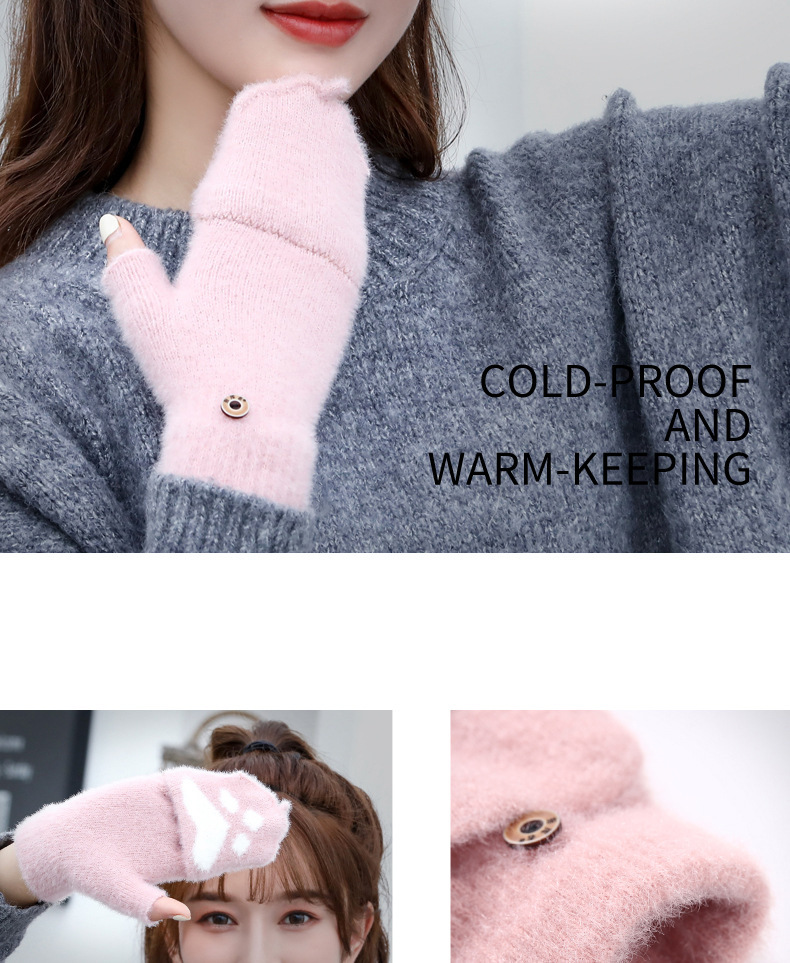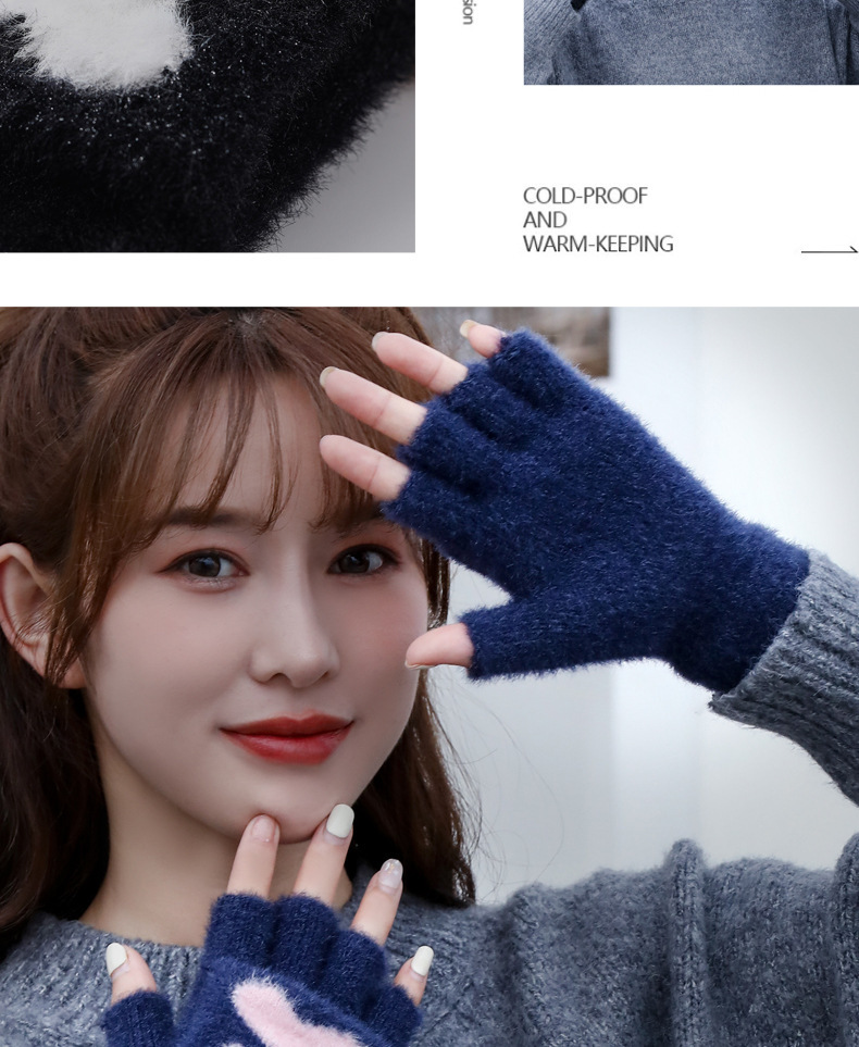 울 반 손가락 장갑 겨울 클램 쉘 따뜻한 두꺼운 새는 손가락 모조 밍크 벨벳 새로운 자카드 니트 장갑 재고 도매스토어 가기