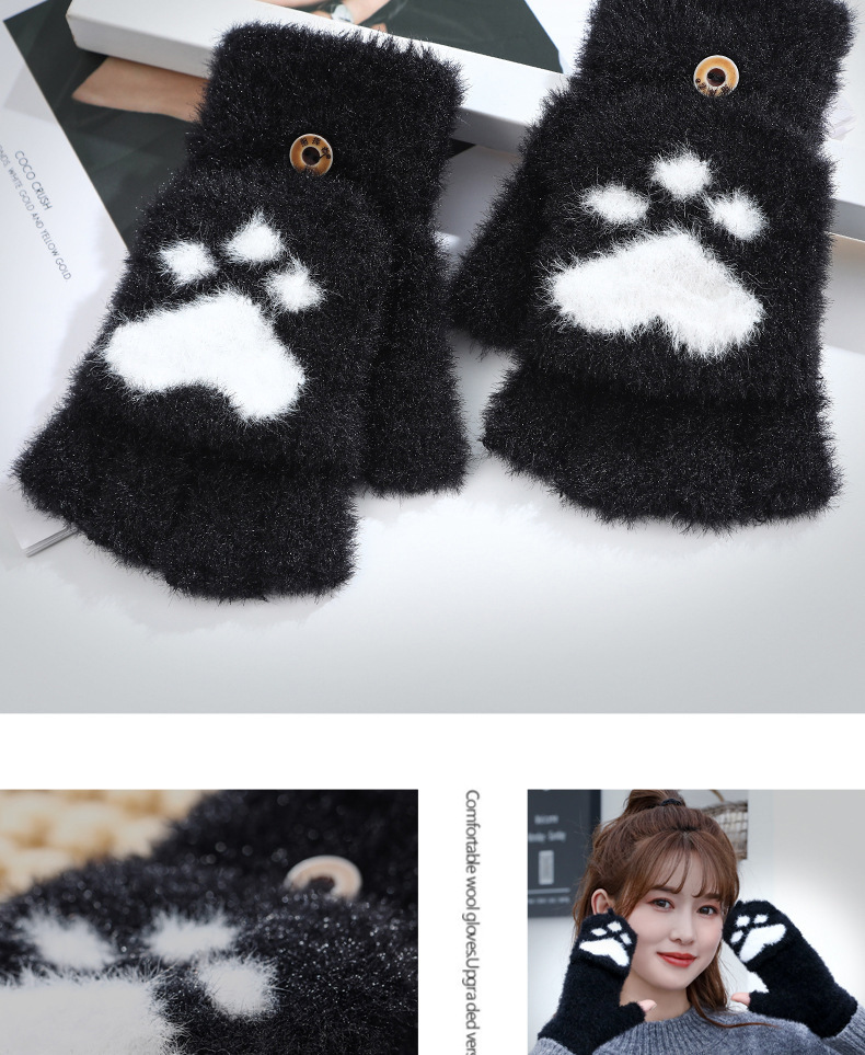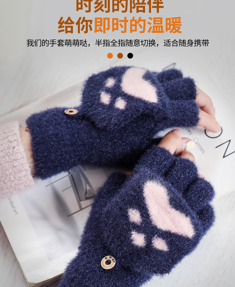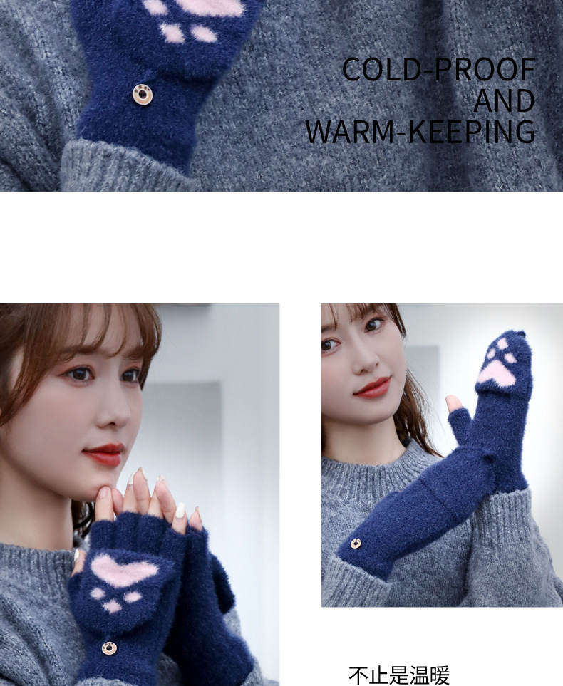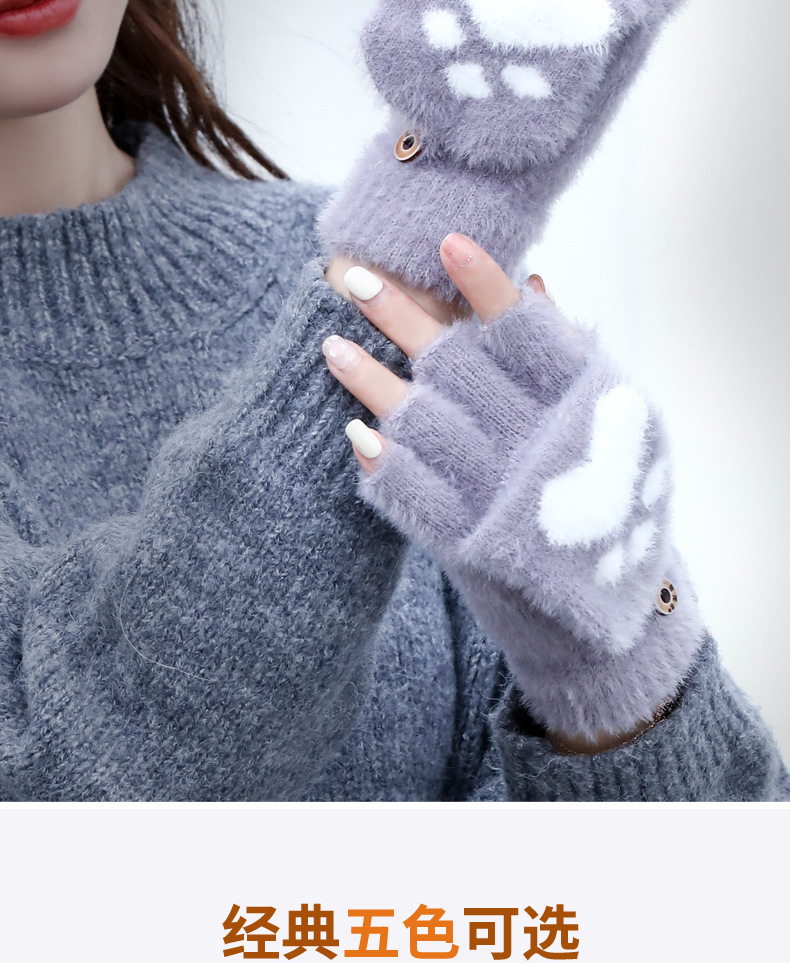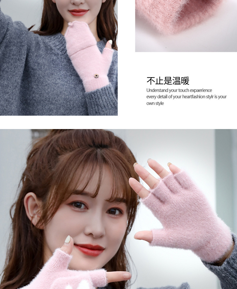 울 반 손가락 장갑 겨울 클램 쉘 따뜻한 두꺼운 새는 손가락 모조 밍크 벨벳 새로운 자카드 니트 장갑 재고 도매스토어 가기