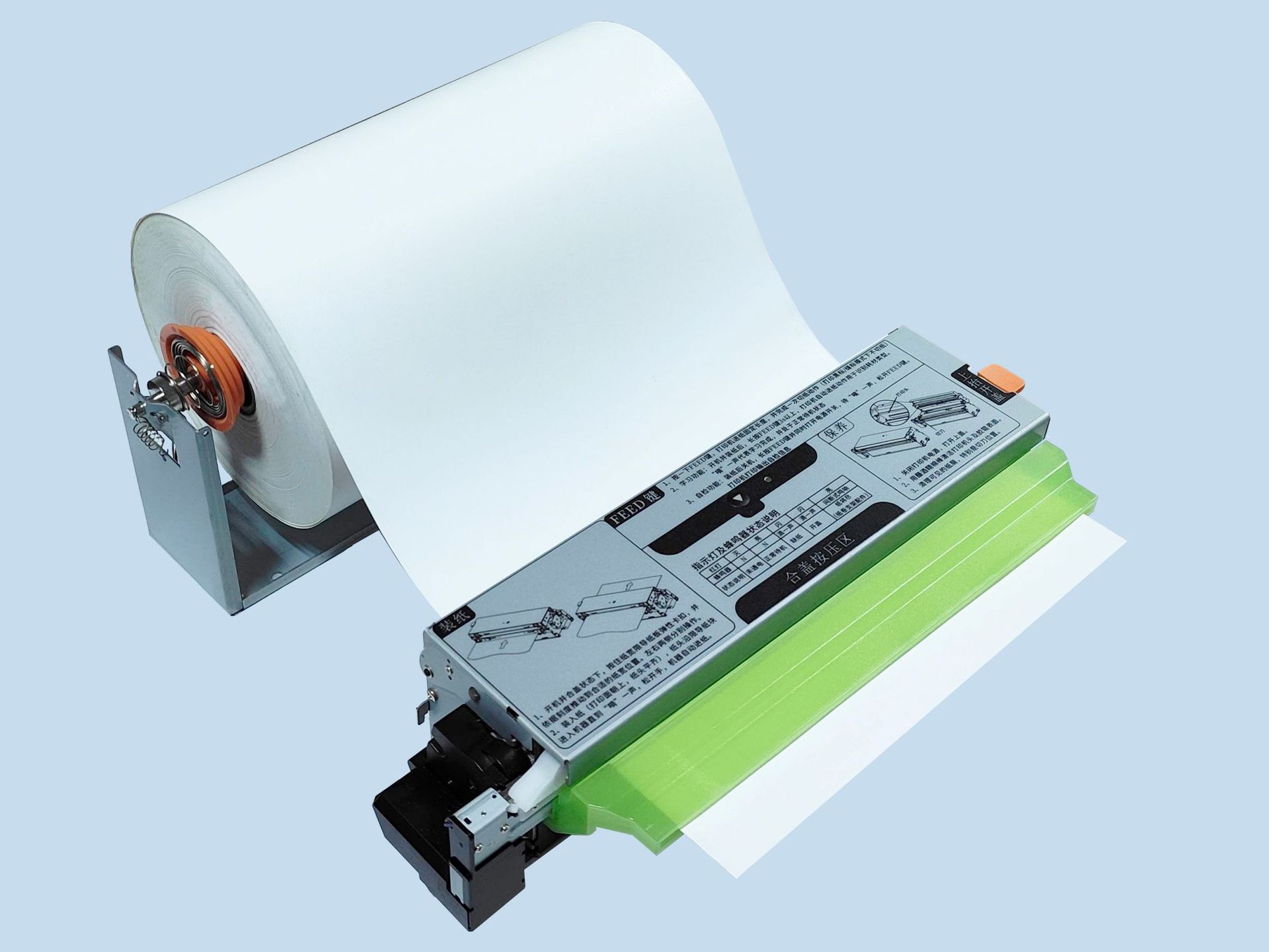 YLX800R热敏打印机采用模块化组合设计,可灵活配置部署。内置精芯科技热敏打印头以及控制电路,是一款体积小、重量轻的高科技产品,具有打印速度快、打印质量高,性能可靠,自动切纸,纸卷容量大,以及增加容纸收回处理器(另配匹配该机器的容纸收回处理器) ;方便安装固定,多类型串口数据通信、支持多系统,操作简单等优点,可内置于多型设备