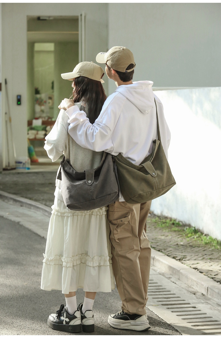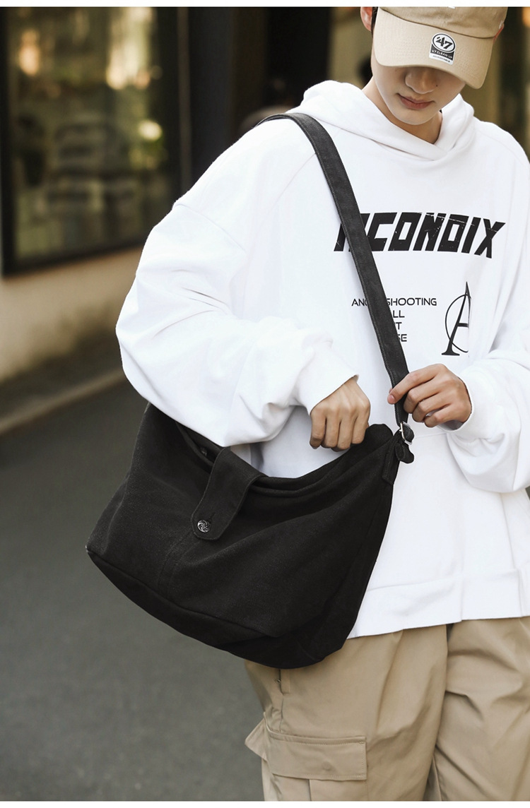 새로운 캔버스 가방 남성 메신저 가방 캐주얼 가방 대용량 학생 씻은 천 숄더백 여성용 만두 가방