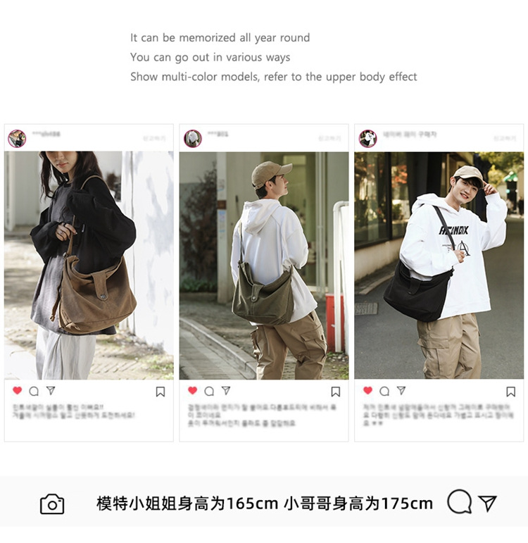 새로운 캔버스 가방 남성 메신저 가방 캐주얼 가방 대용량 학생 씻은 천 숄더백 여성용 만두 가방스토어 가기