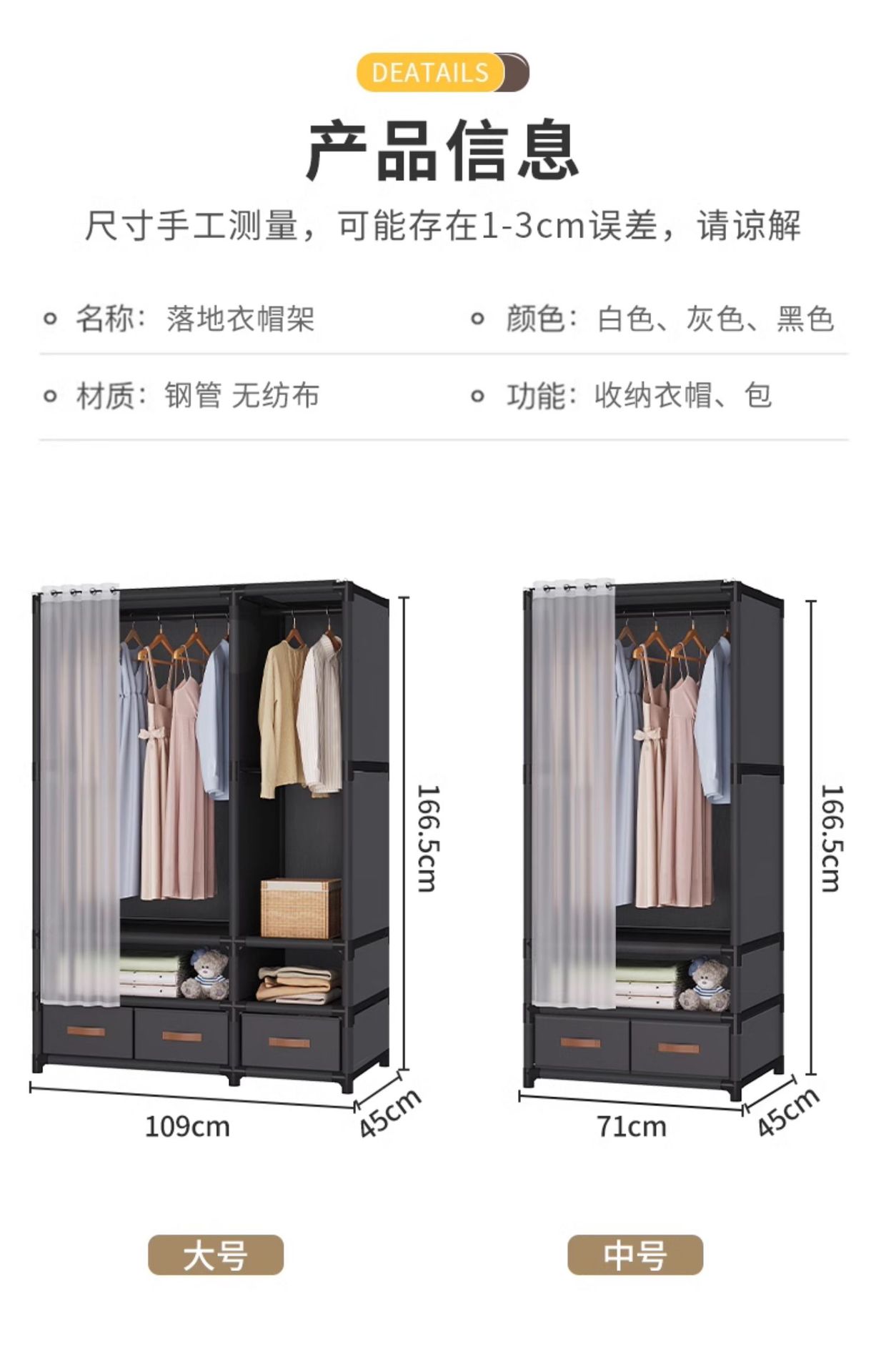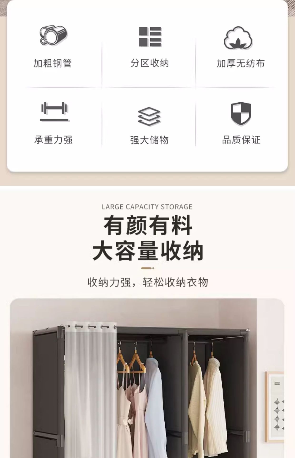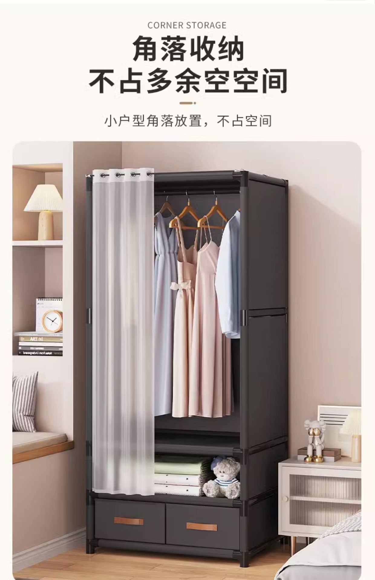 옷장 홈 침실 임대 집 간단한 천 옷장 강력하고 내구성있는 방진 저장 보관 옷장 고정 랙스토어 가기