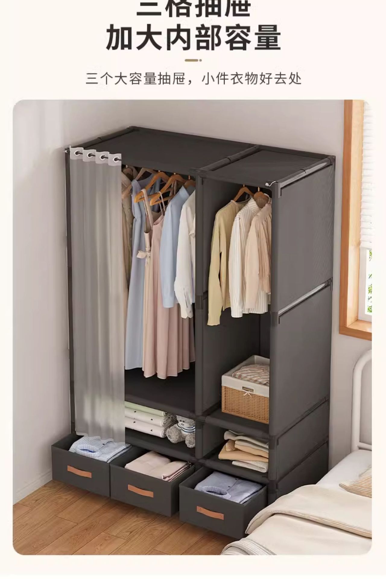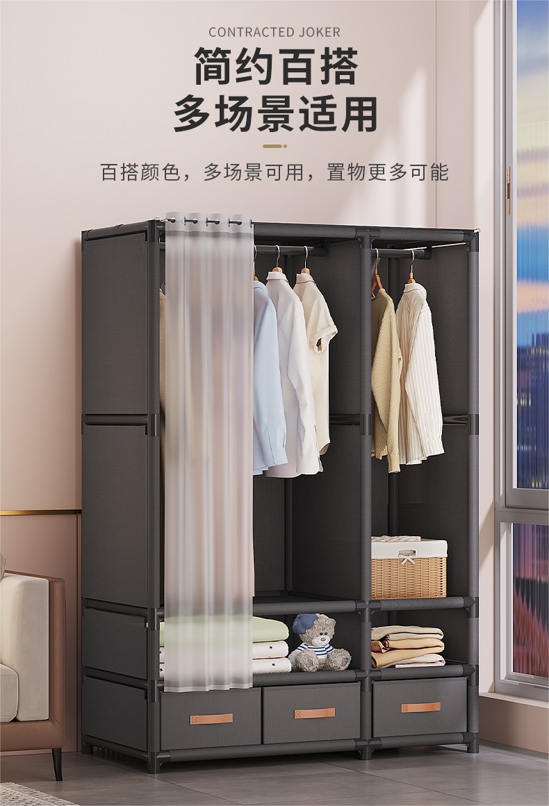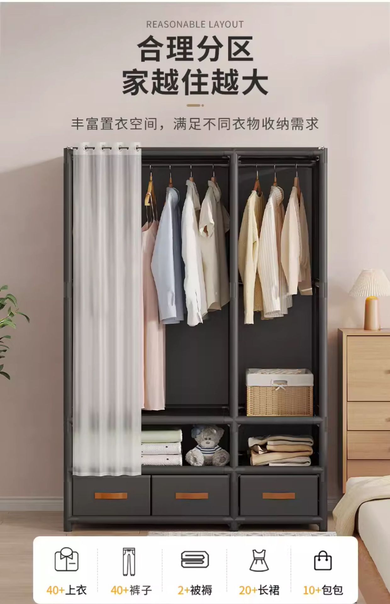옷장 홈 침실 임대 집 간단한 천 옷장 강력하고 내구성있는 방진 저장 보관 옷장 고정 랙스토어 가기