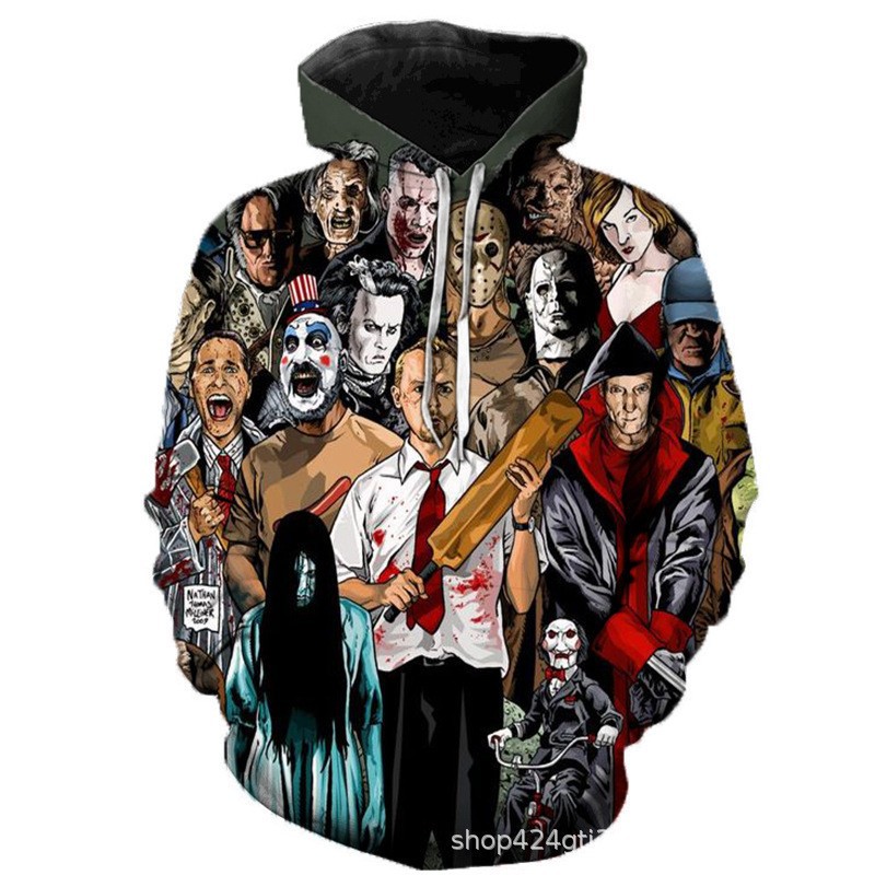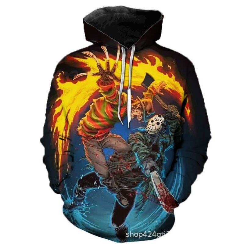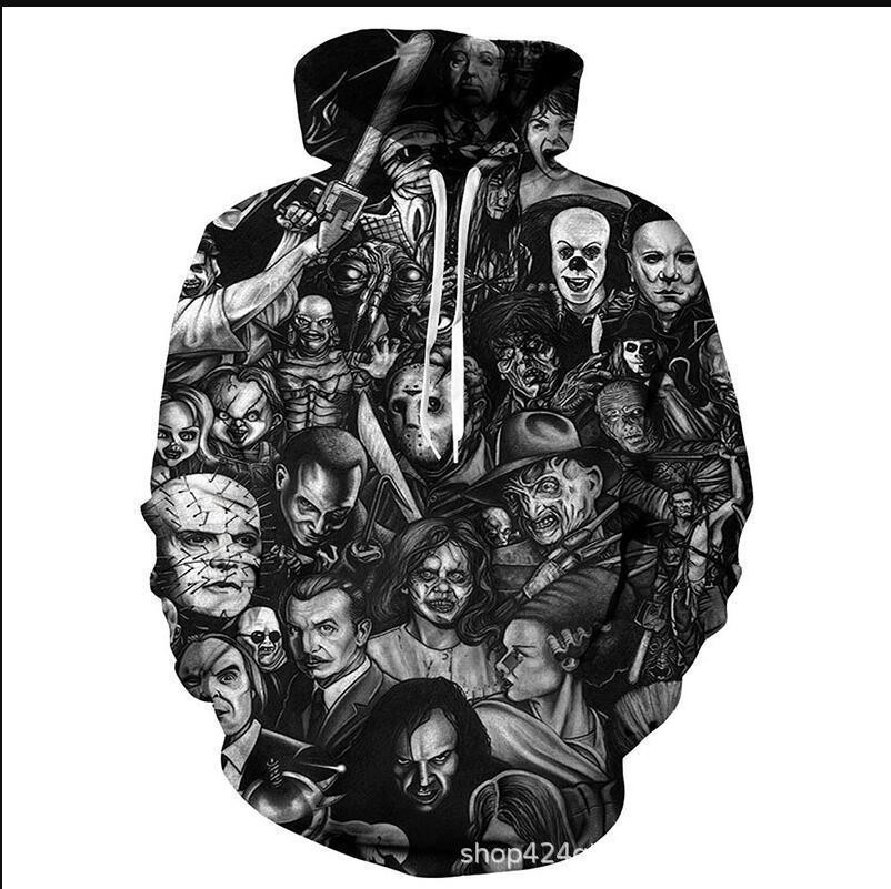 유럽과 미국의 인기있는 새로운 할로윈 스웨터 3D 디지털 인쇄 스웨터 아마존 가을과 겨울 후드 스웨터스토어 가기