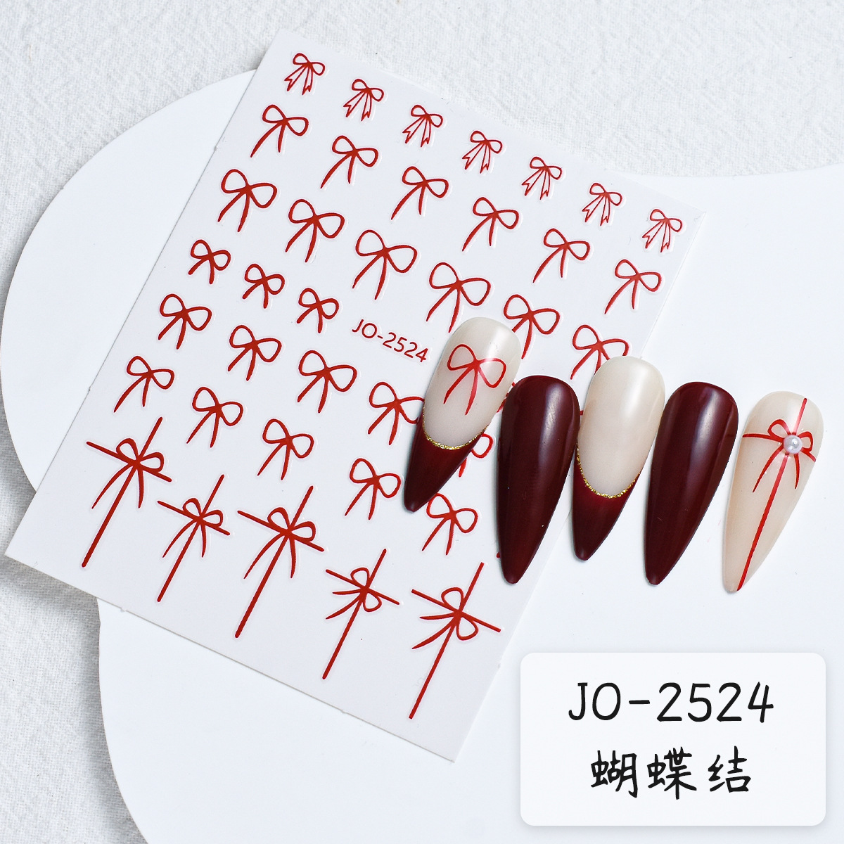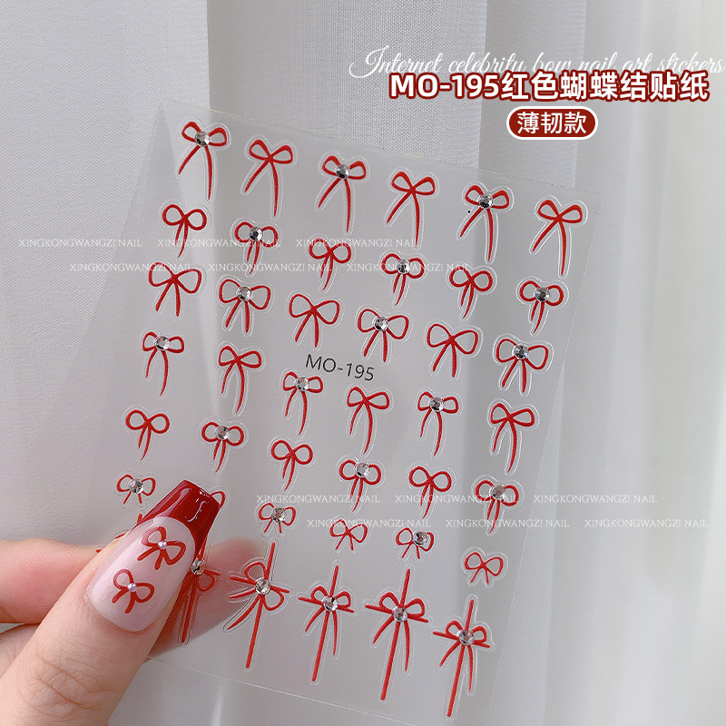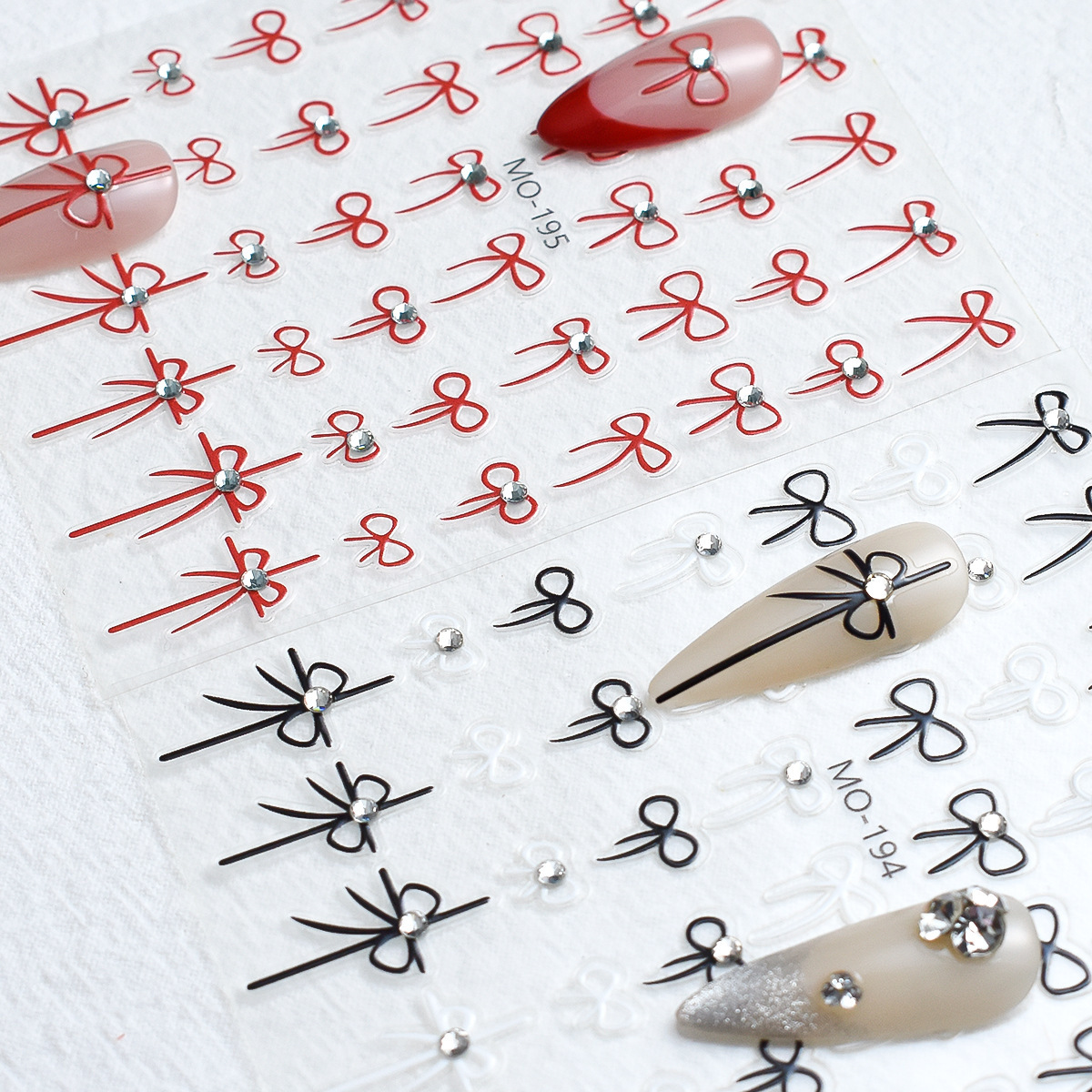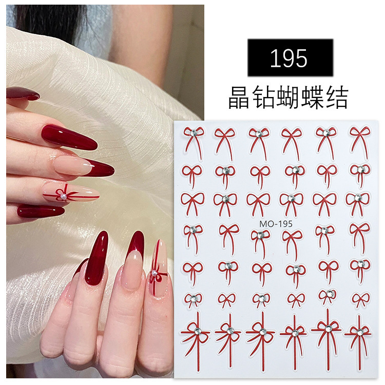 리본 크리스탈 보석 리본 매니큐어 스티커 인기 폭발 흑백 새해 레드 얇고 유연한 네일 스티커 장식
