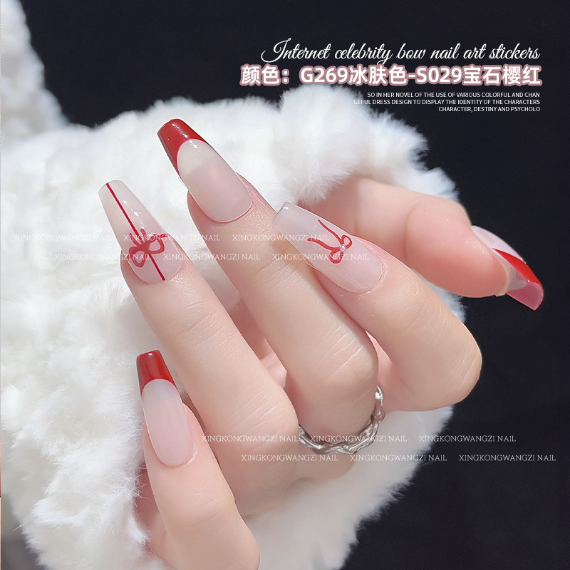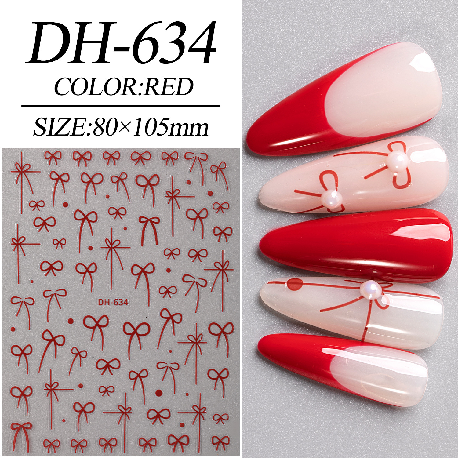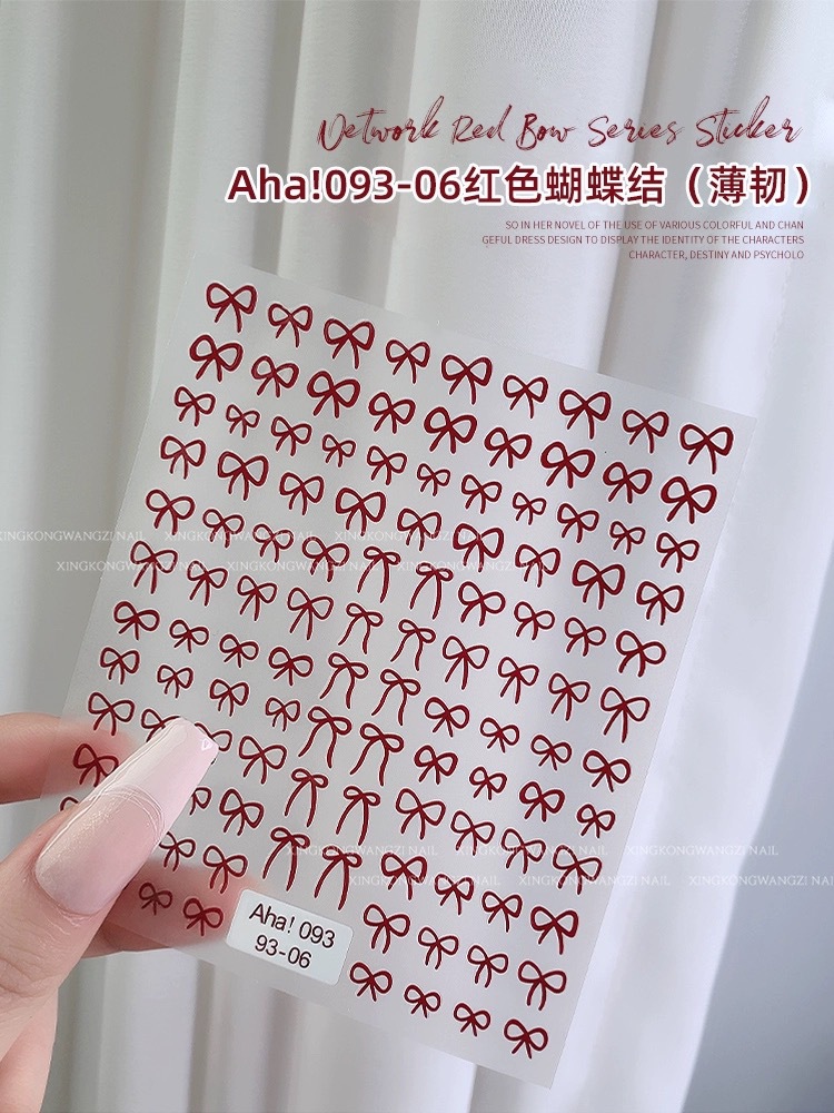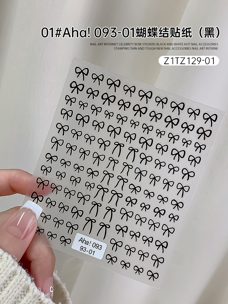 리본 크리스탈 보석 리본 매니큐어 스티커 인기 폭발 흑백 새해 레드 얇고 유연한 네일 스티커 장식