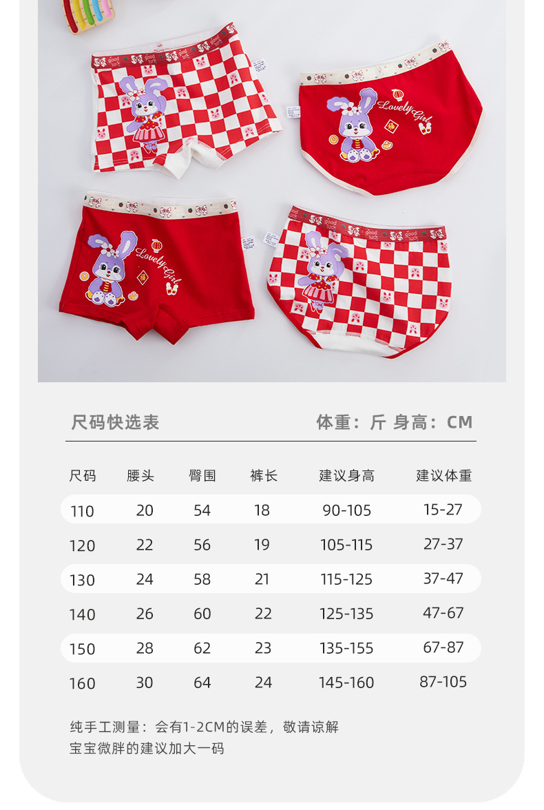 2026년 신년용 어린이용 빨간색 삼각팬티, 중대형 어린이용, 탄생연도 행운을 기원하는 사각팬티, 순면 코마사 반바지 도매
