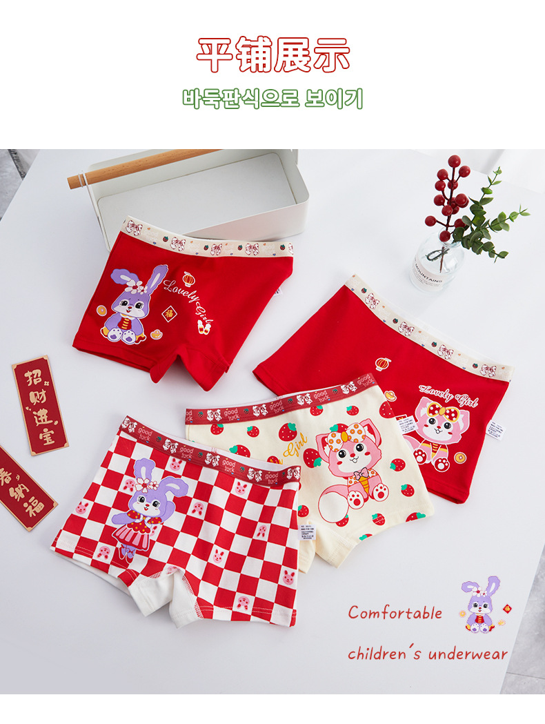 2026년 신년용 어린이용 빨간색 삼각팬티, 중대형 어린이용, 탄생연도 행운을 기원하는 사각팬티, 순면 코마사 반바지 도매스토어 가기