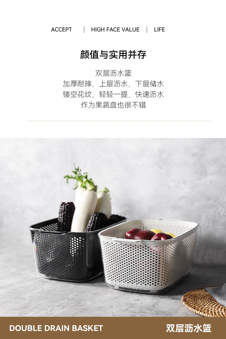 두 배 층 야채 세척 분지 배수 바구니 다기능 주방 가구 빛 고급 과일 플레이트 거실 야채 필터 바구니 세척 야채 바구니스토어 가기