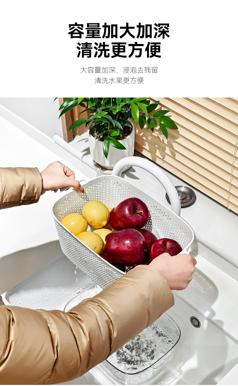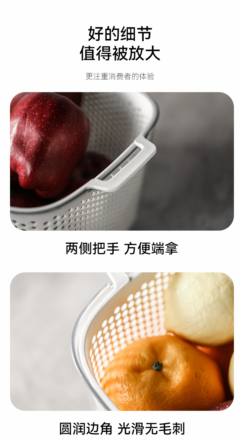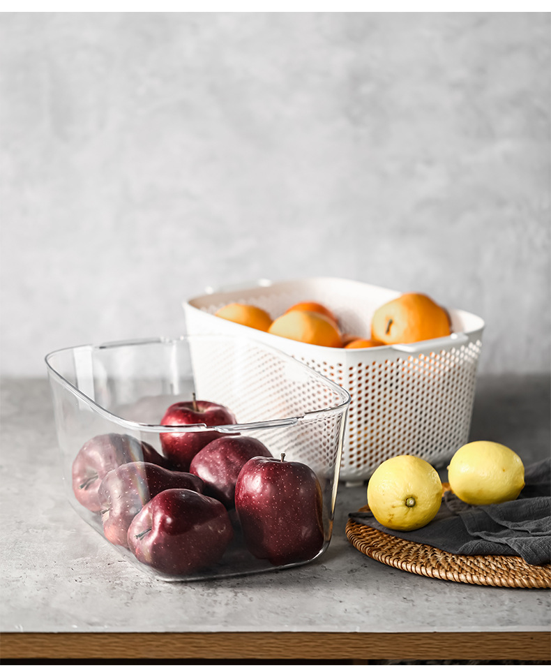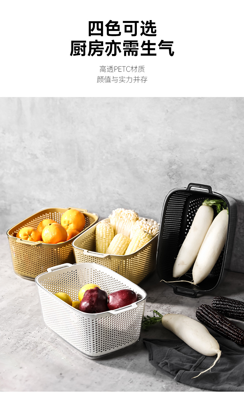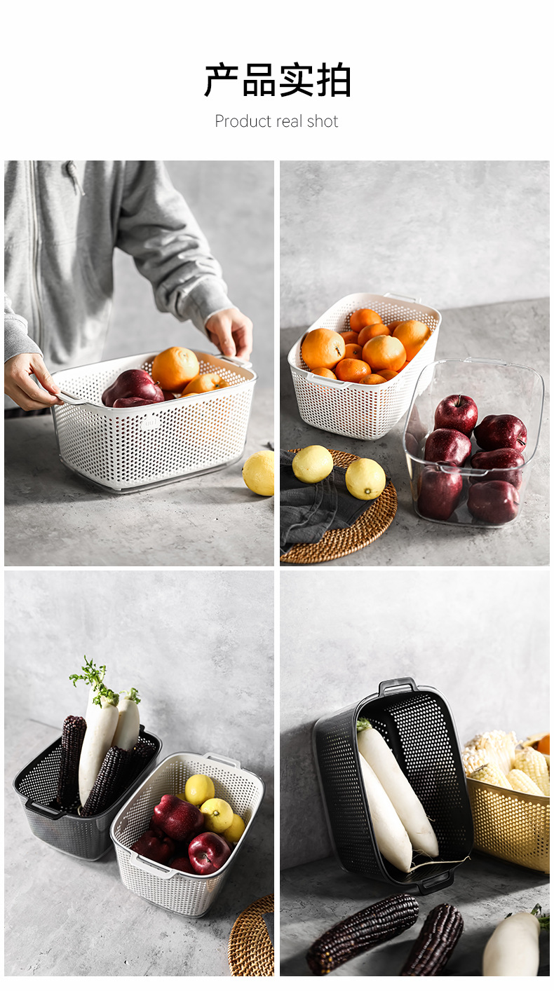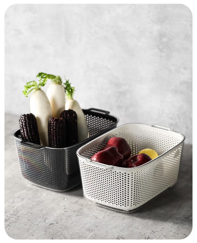 두 배 층 야채 세척 분지 배수 바구니 다기능 주방 가구 빛 고급 과일 플레이트 거실 야채 필터 바구니 세척 야채 바구니