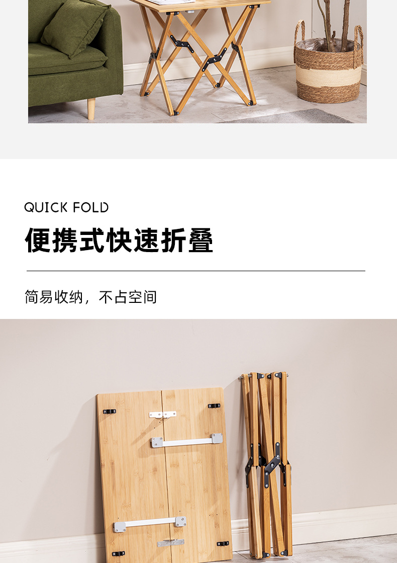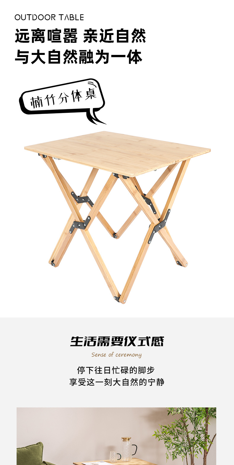 야외 바베큐 식탁 가족 거실 커피 테이블 작은 테이블 대나무 사각형 테이블 접이식 캠핑 테이블 소스 제조업체스토어 가기