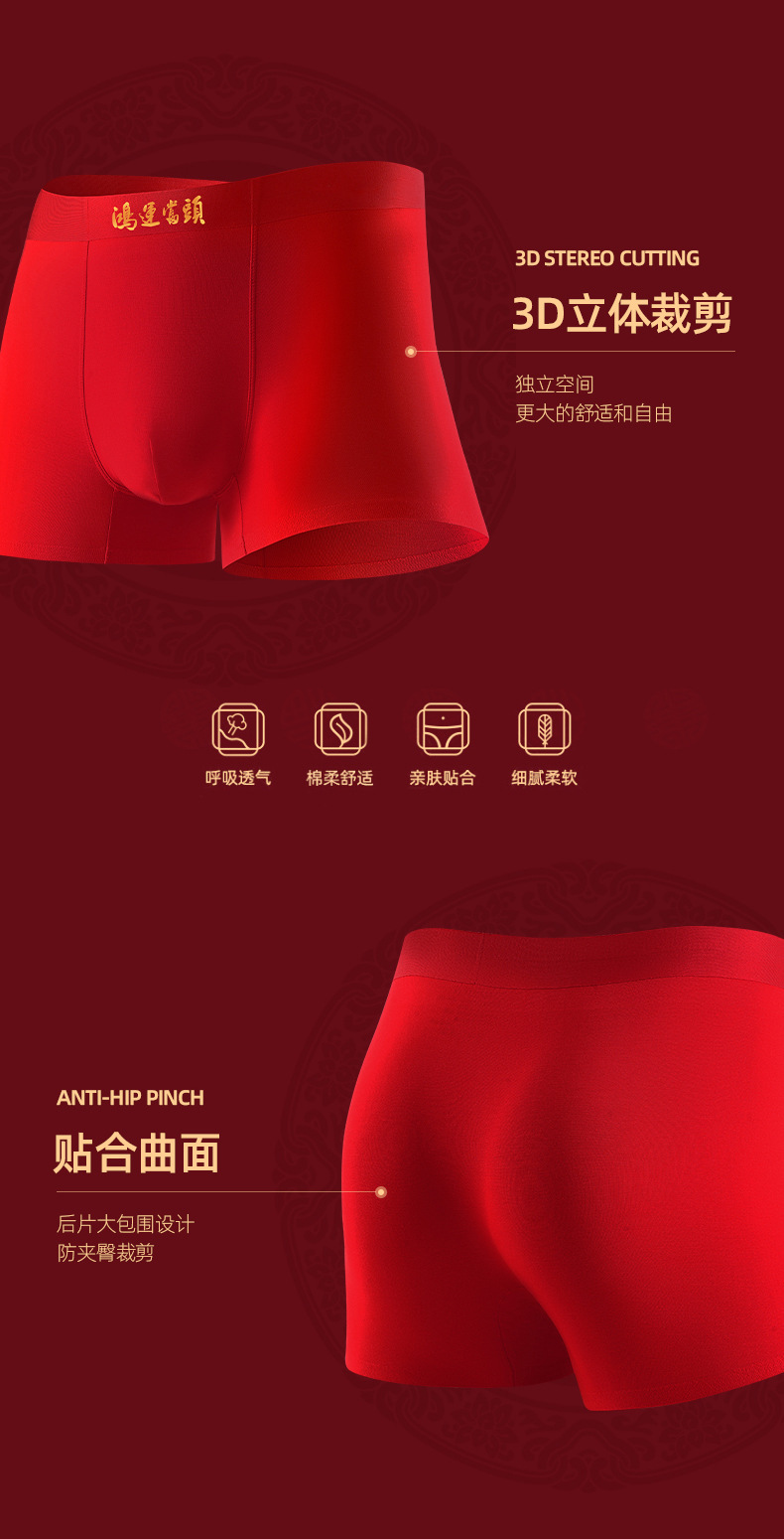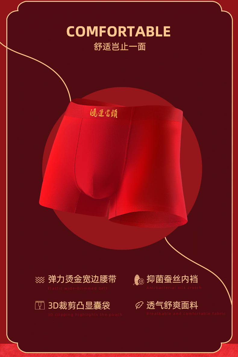 남성용 7A 항균 순면 사각팬티, 무봉제 행운의 결혼식용 뱀띠 년도용 도매 항균 속옷스토어 가기