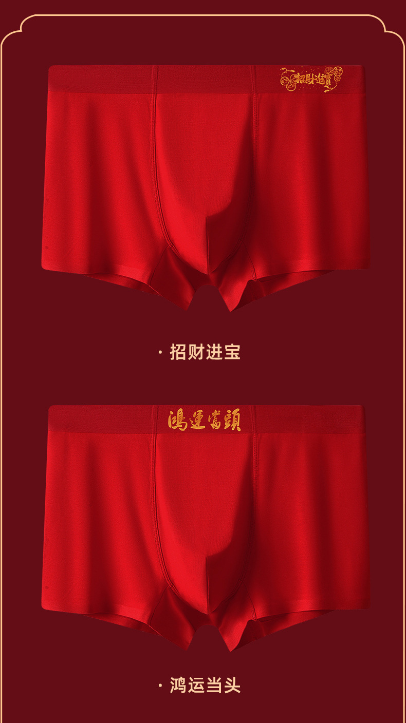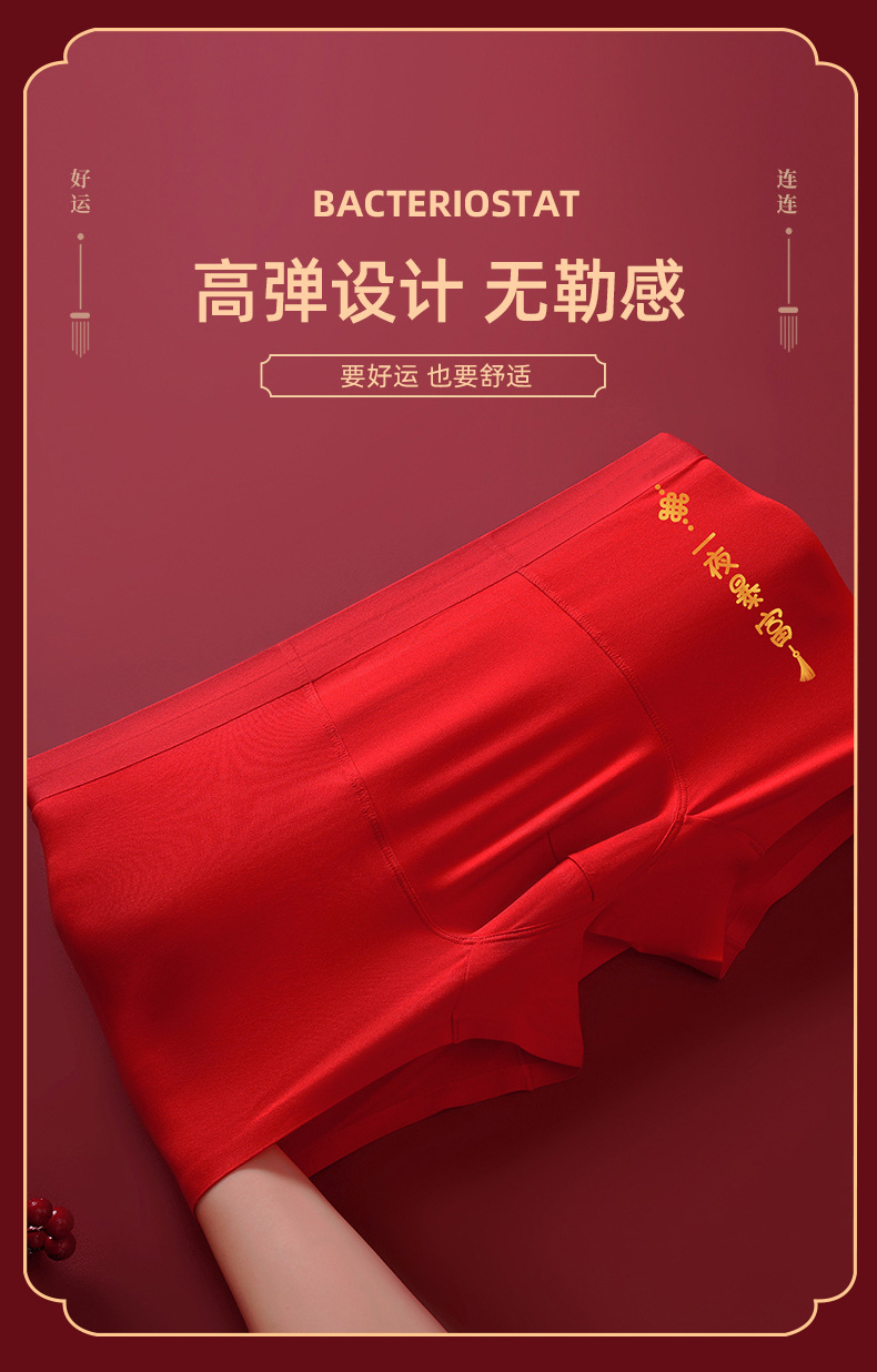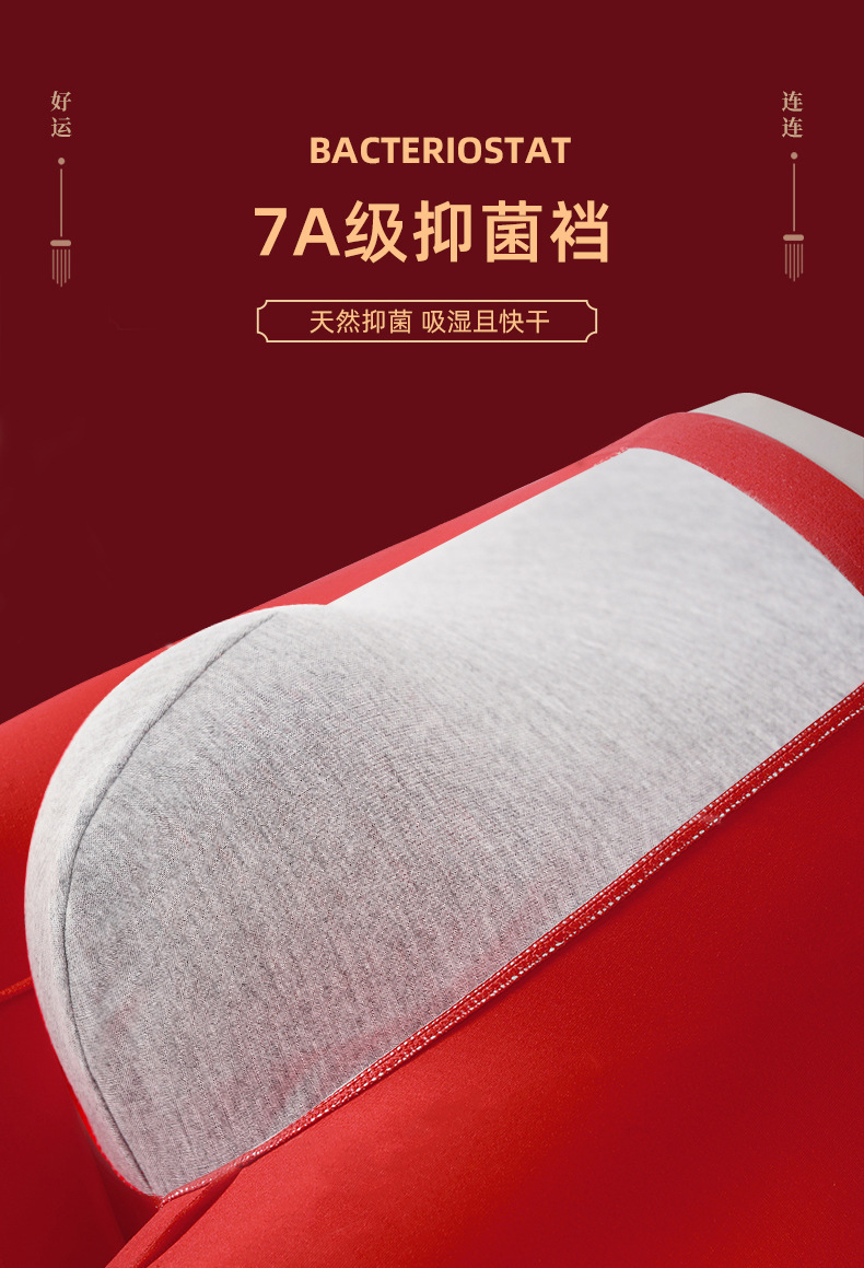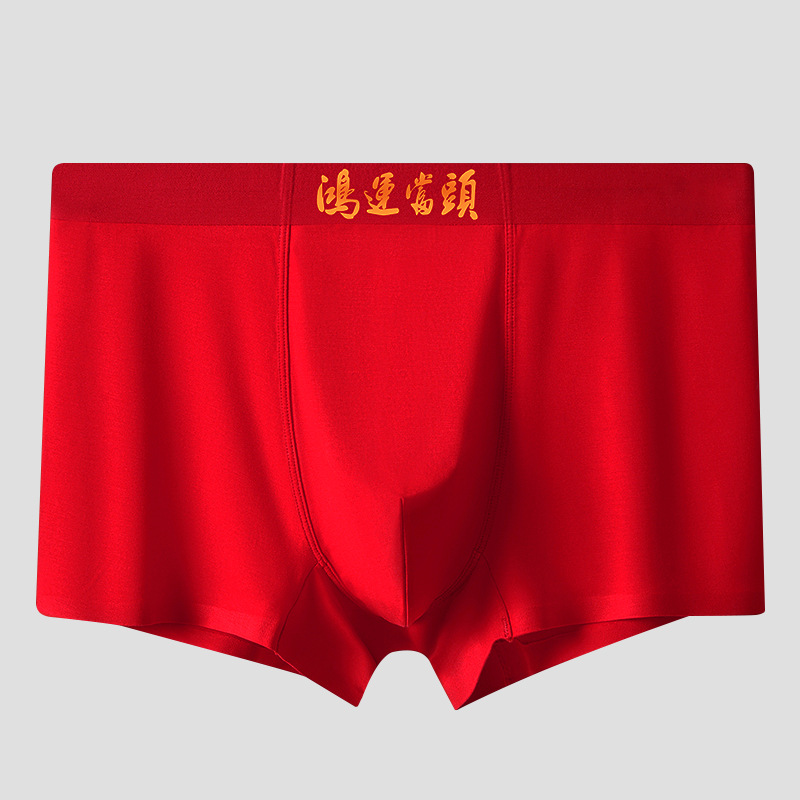 남성용 7A 항균 순면 사각팬티, 무봉제 행운의 결혼식용 뱀띠 년도용 도매 항균 속옷