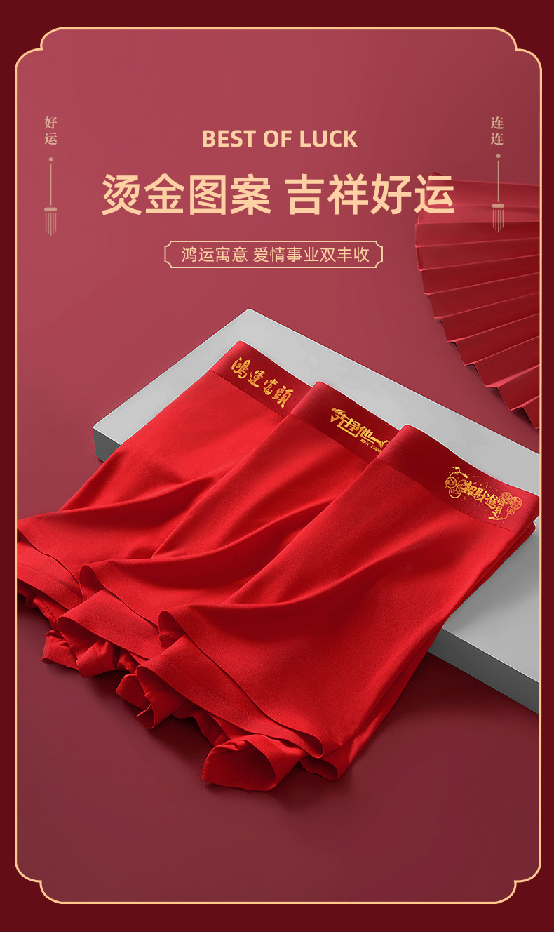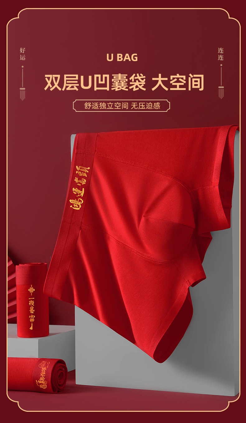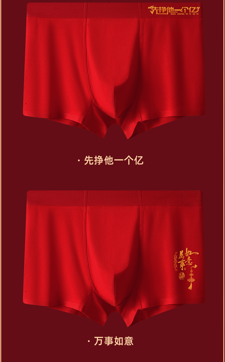 남성용 7A 항균 순면 사각팬티, 무봉제 행운의 결혼식용 뱀띠 년도용 도매 항균 속옷