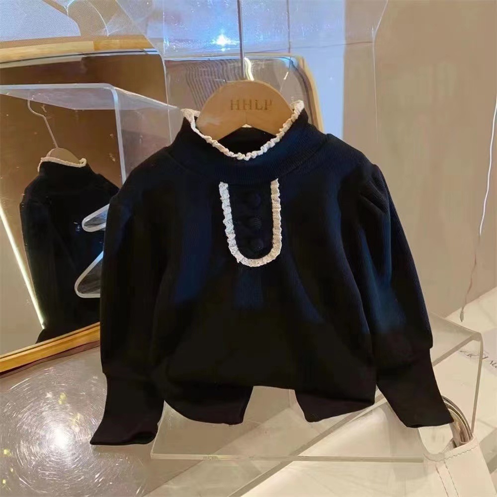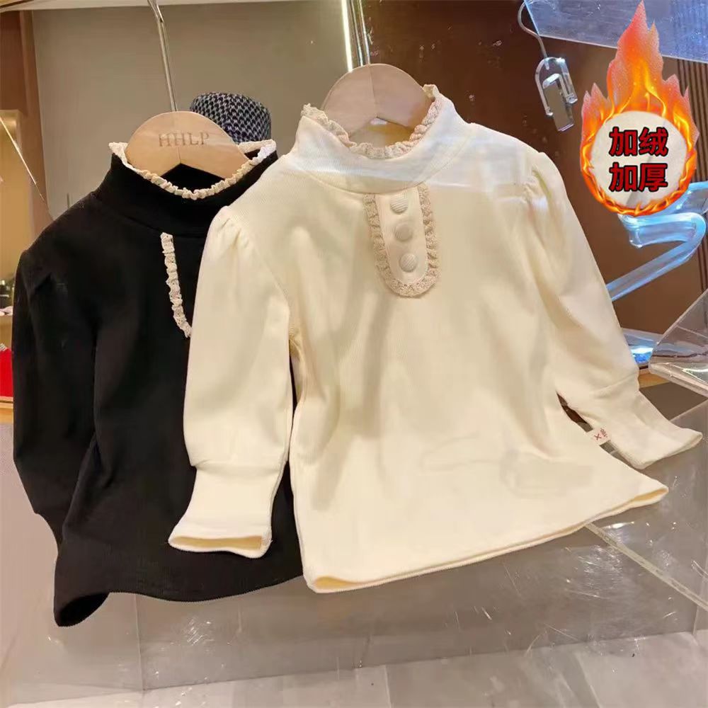 여자 기모 두꺼운 바닥 셔츠 한국식 따뜻한 가을과 겨울 의류 2023 새로운 어린이 티셔츠 아기 소녀 탑