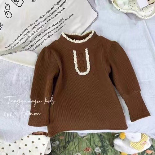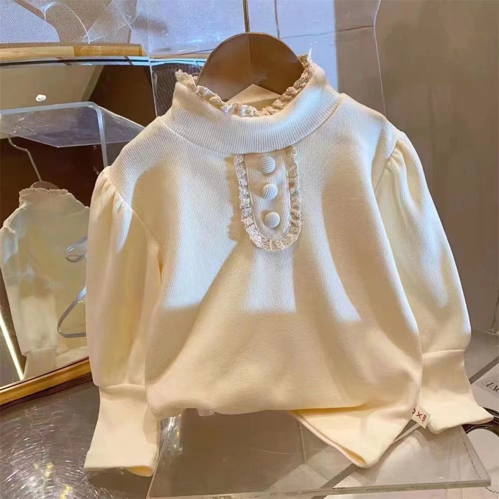 여자 기모 두꺼운 바닥 셔츠 한국식 따뜻한 가을과 겨울 의류 2023 새로운 어린이 티셔츠 아기 소녀 탑스토어 가기
