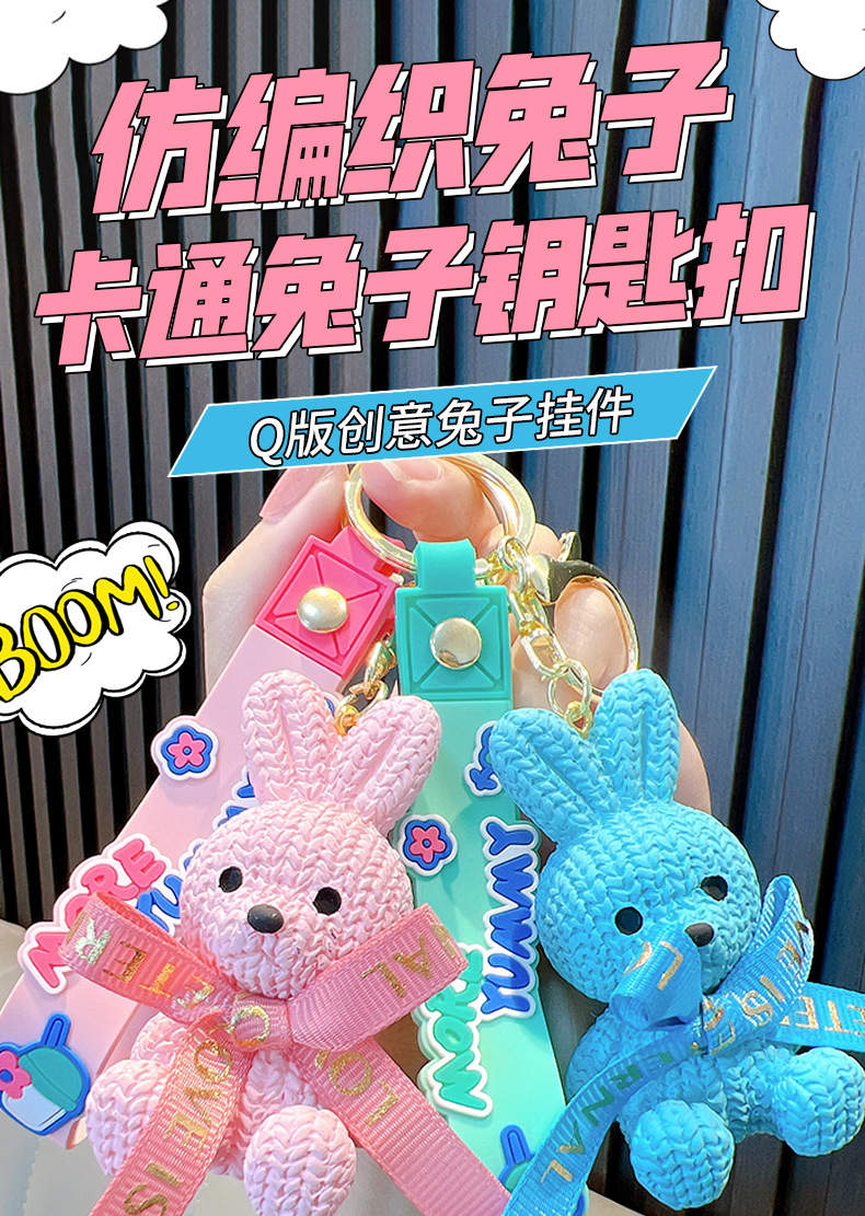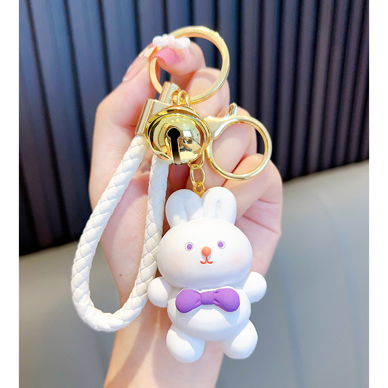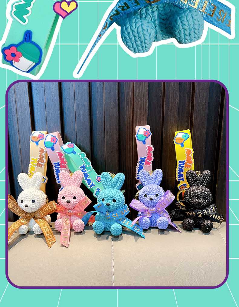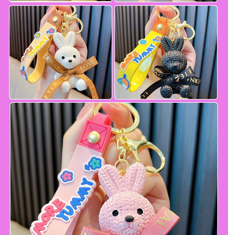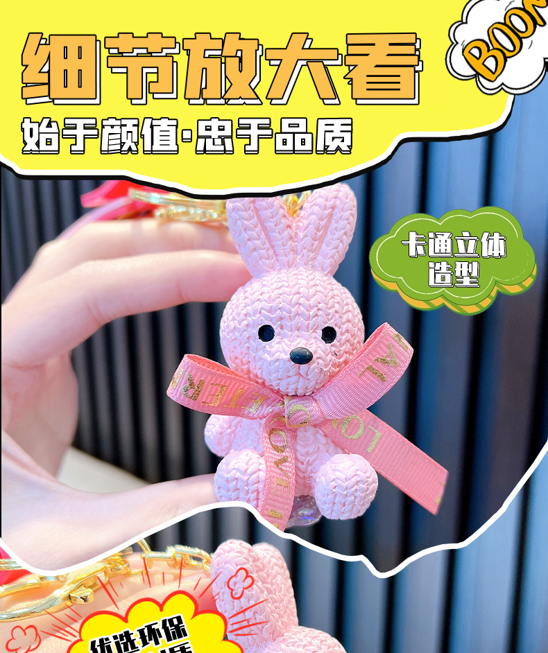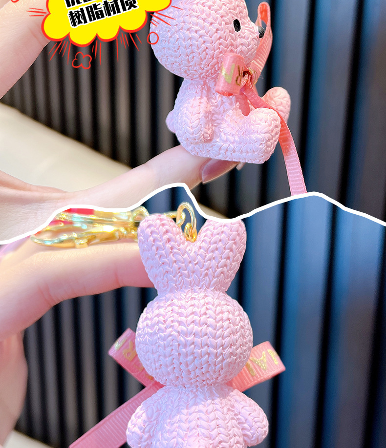 리본 토끼 키 체인 모조 울 짠 귀여운 수지 앉아 펜던트 가방 액세서리 커플 선물 도매