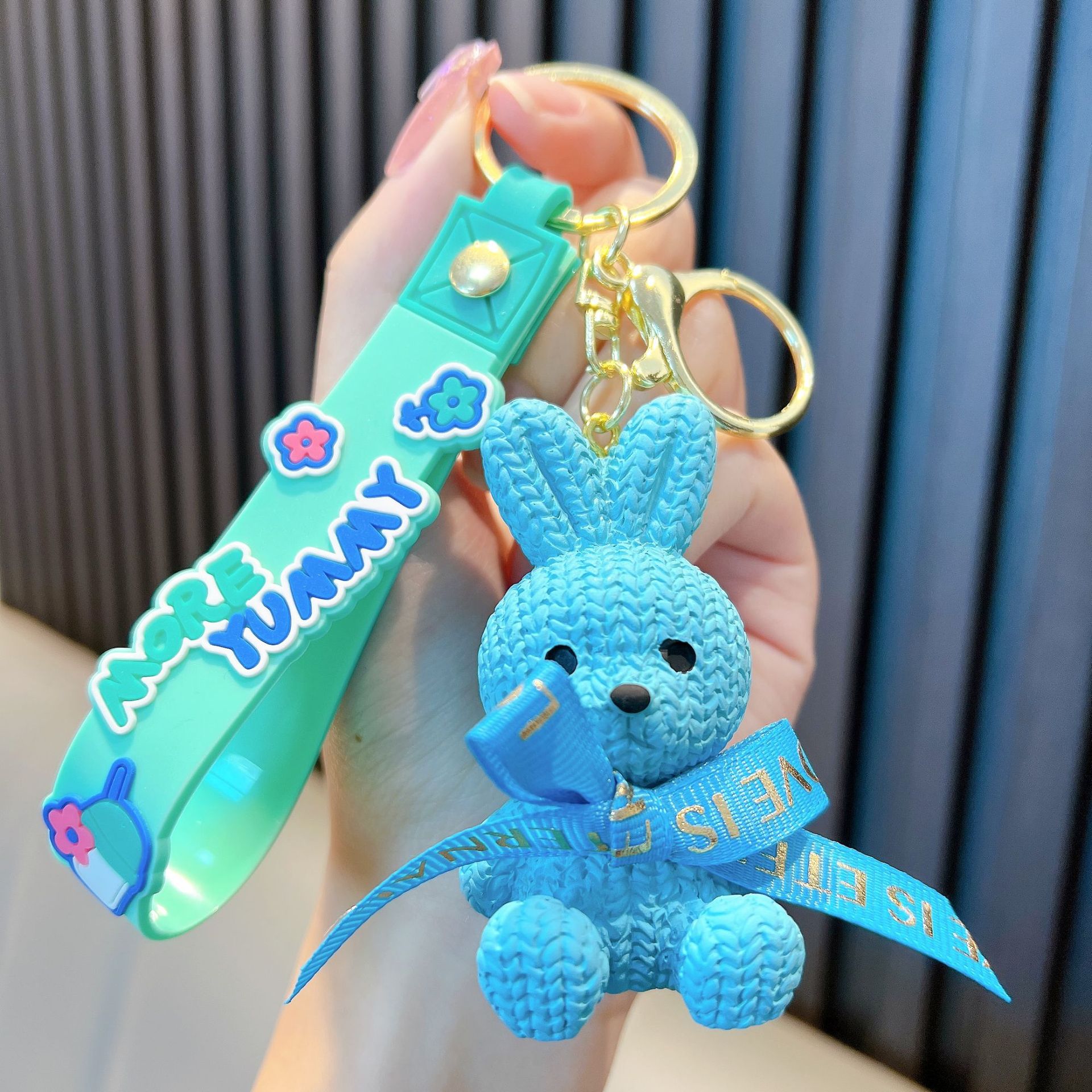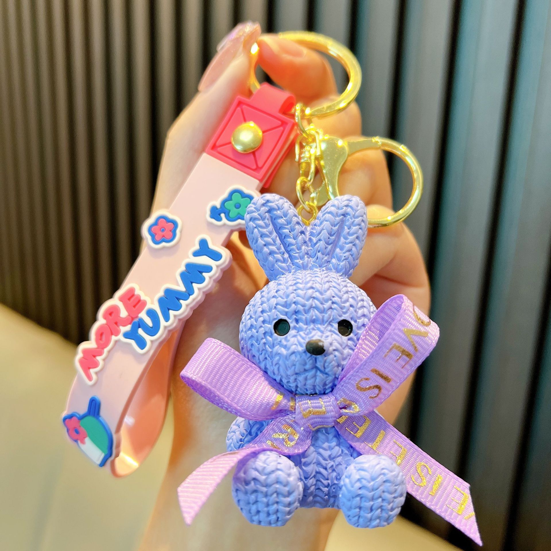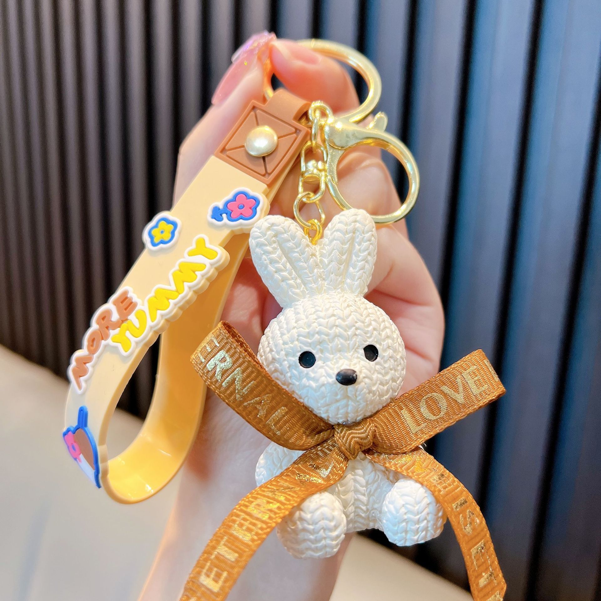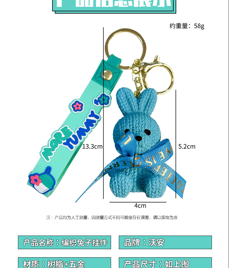 리본 토끼 키 체인 모조 울 짠 귀여운 수지 앉아 펜던트 가방 액세서리 커플 선물 도매