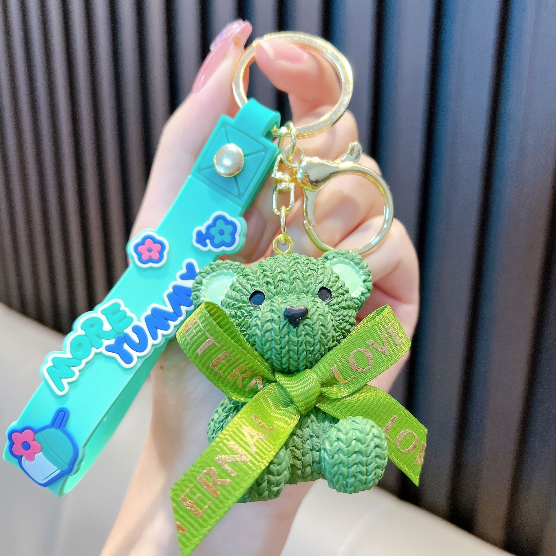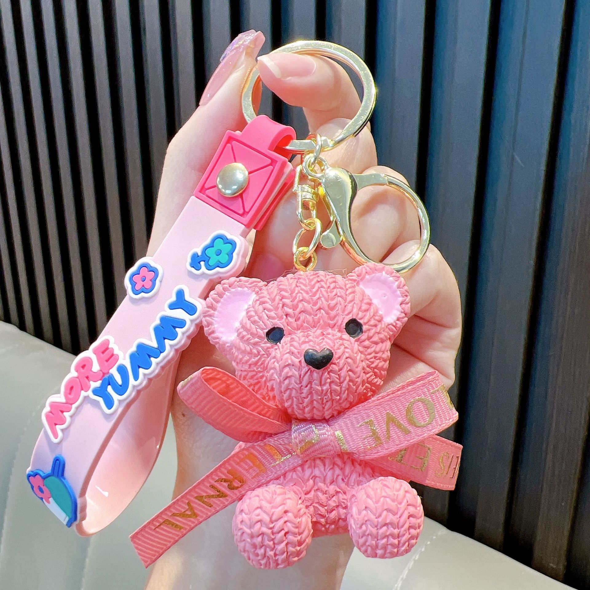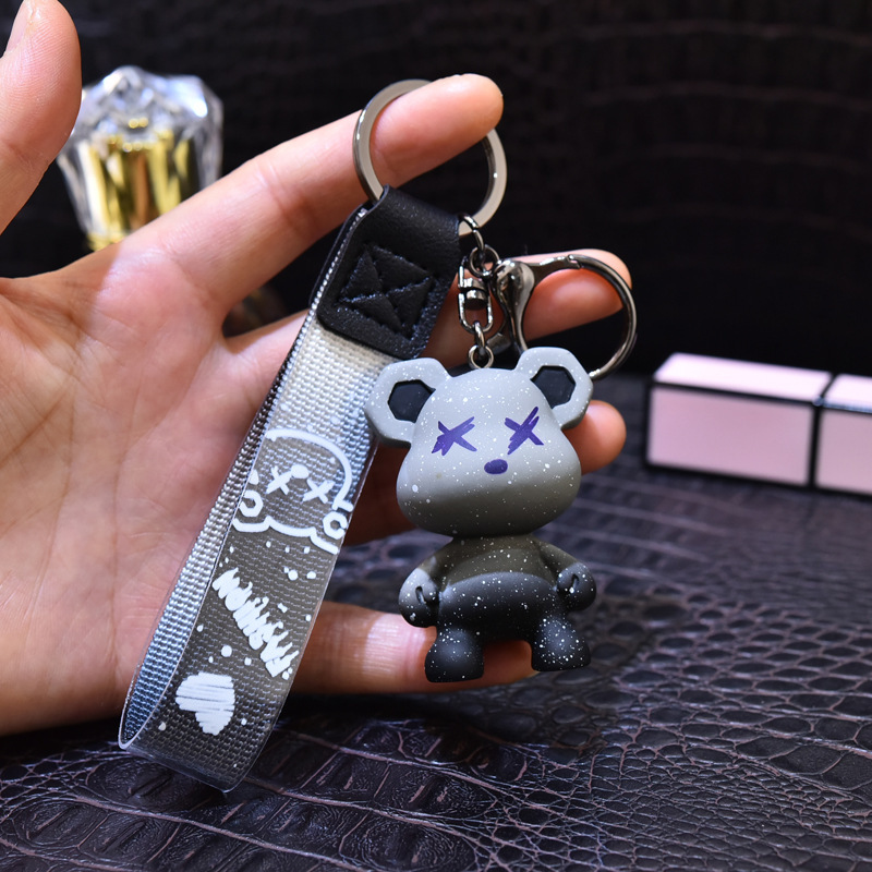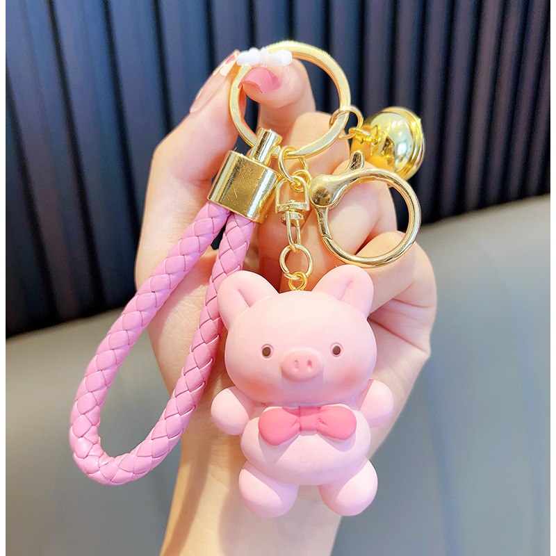 리본 토끼 키 체인 모조 울 짠 귀여운 수지 앉아 펜던트 가방 액세서리 커플 선물 도매