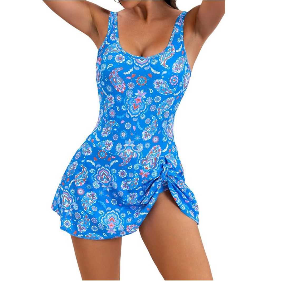 유럽과 미국의 국경을 넘나 드는 새로운 원피스 수영복 여성의 배꼽 수축 스커트 수영복 섹시한 원피스 프린트 하이 웨이스트 탱키니스토어 가기