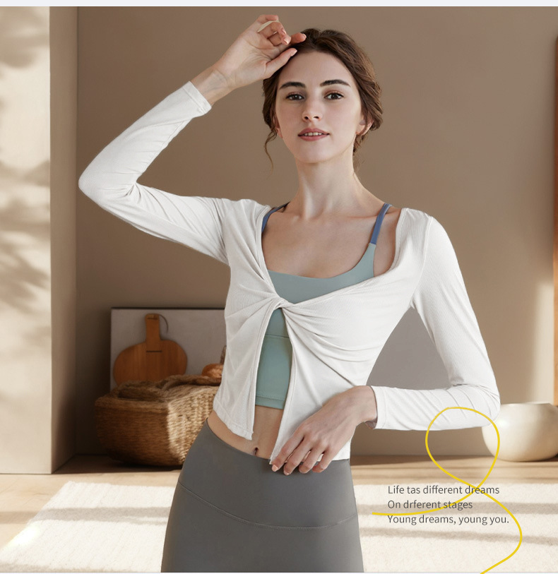 2026년 신상 여성용 요가복 스포츠탑 속건성 긴팔 블라우스, 우아한 피트니스 러닝 필라테스 트레이닝복스토어 가기