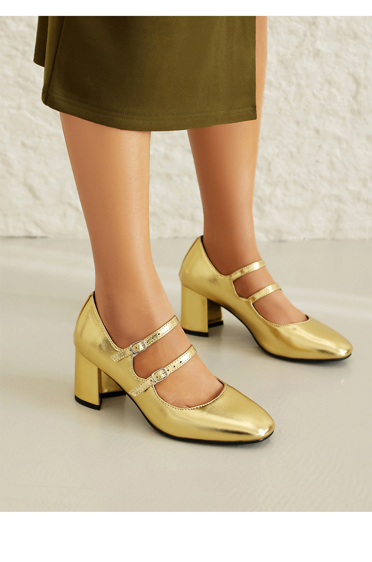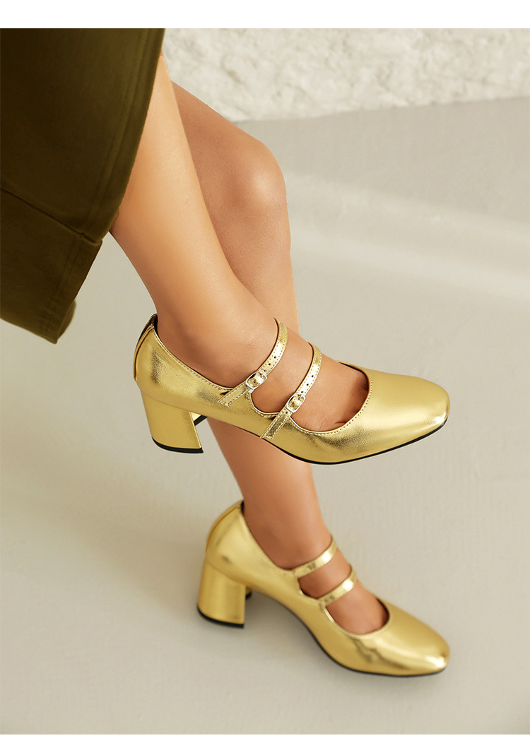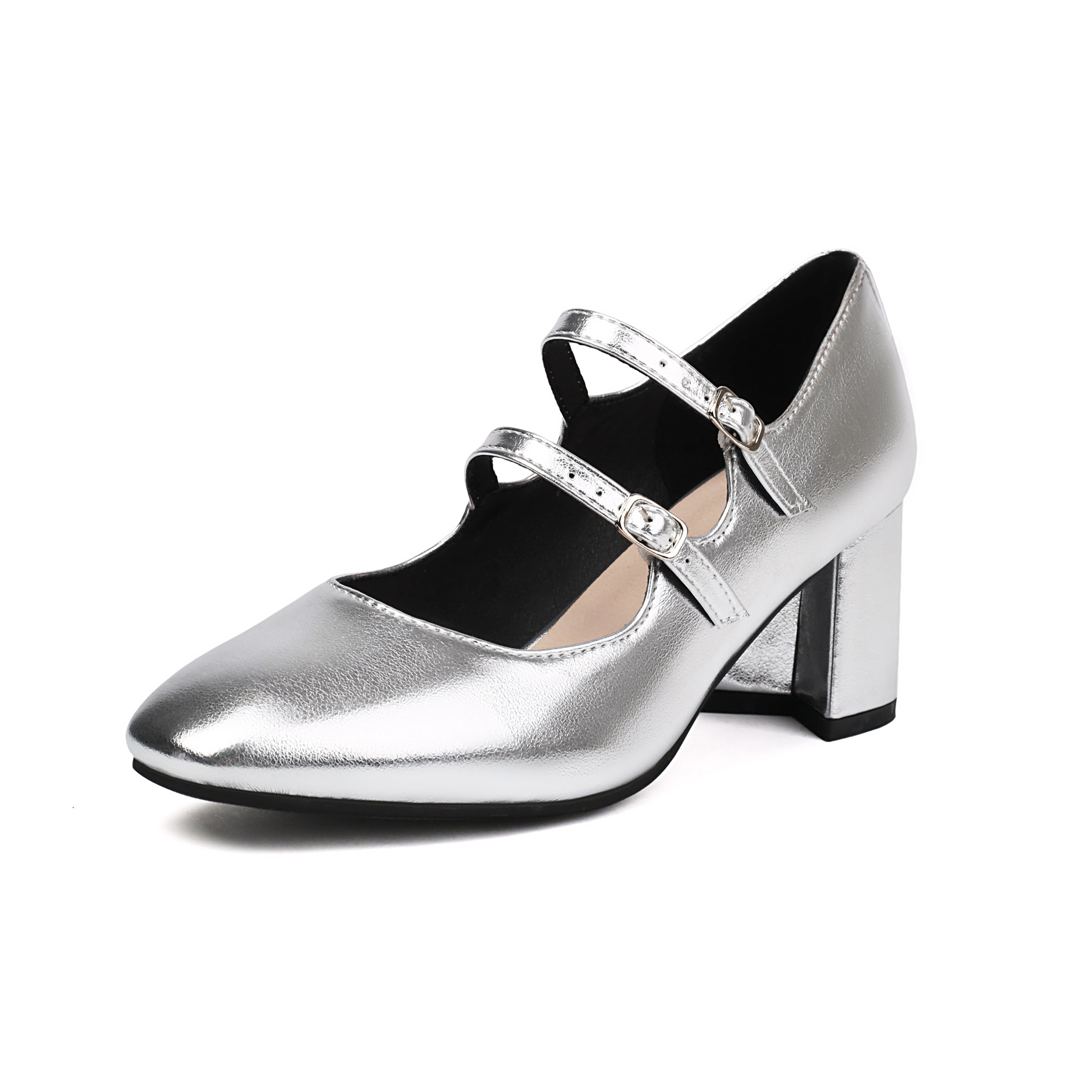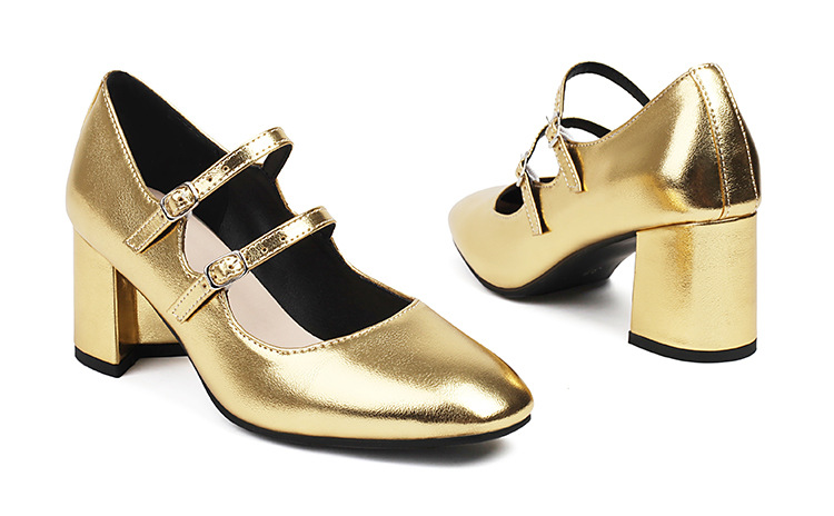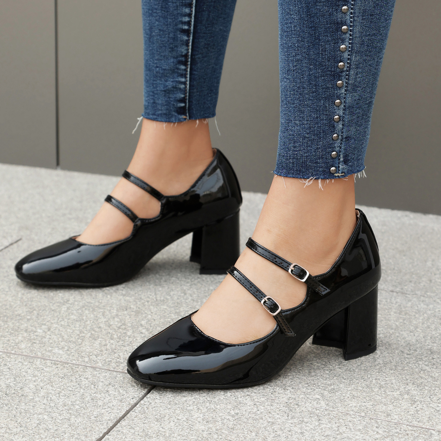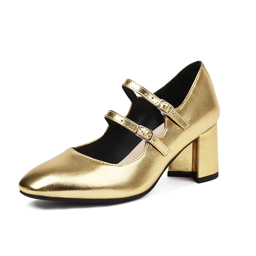 40-50 야드 대외 무역 국경 간 여성 신발 복고풍 버클 두꺼운 힐 신발 여성의 메리 제인 신발 간단한 패션 가죽 신발스토어 가기
