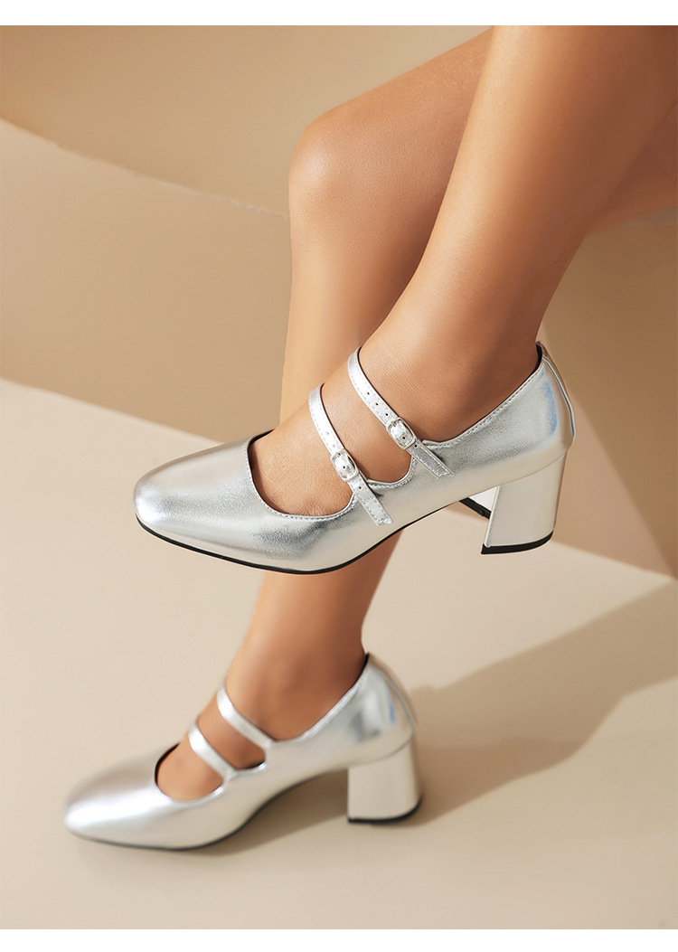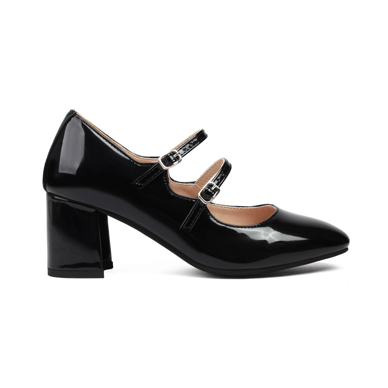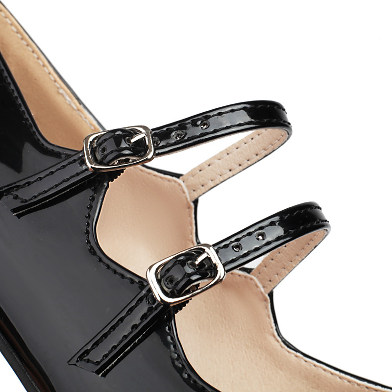 40-50 야드 대외 무역 국경 간 여성 신발 복고풍 버클 두꺼운 힐 신발 여성의 메리 제인 신발 간단한 패션 가죽 신발