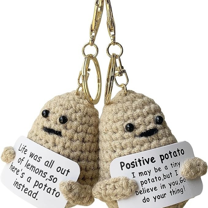 대외 무역 인기상품 positivepotato 재미있는 긍정적인 감자 니트 키체인 인형 커플용스토어 가기