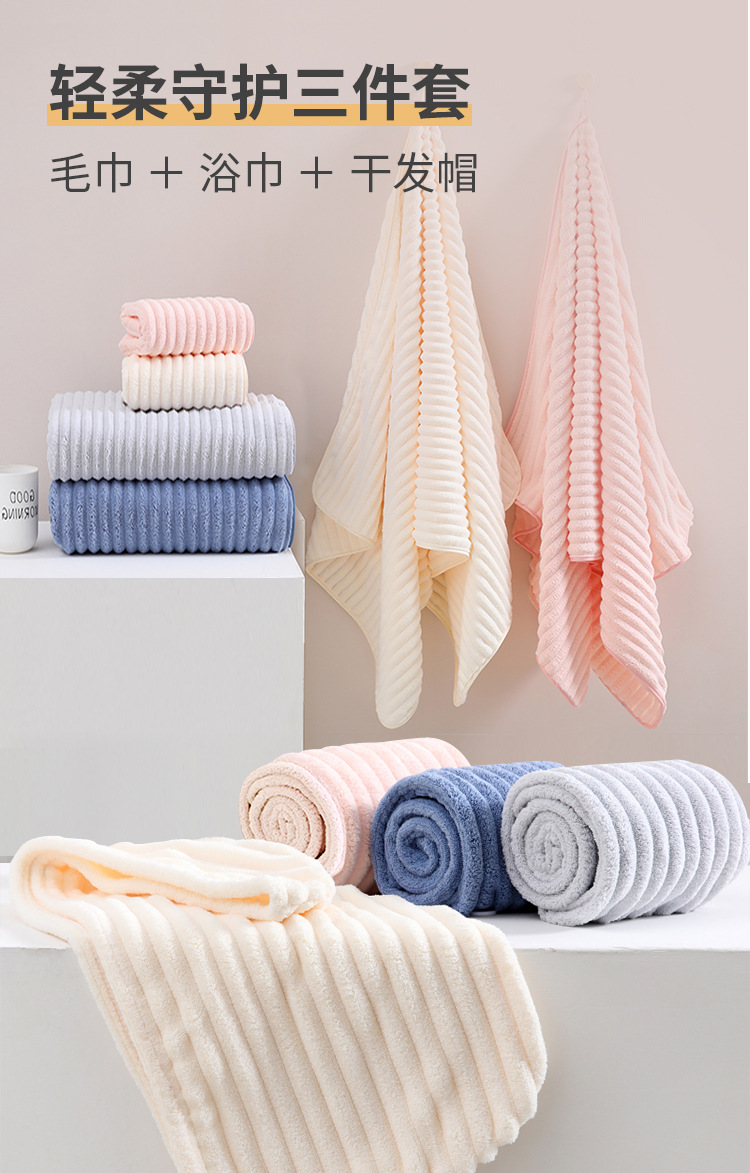 새로운 산호 벨벳 빠른 건조 대형 목욕 수건 캔디 벨벳 비치 타월 욕조 랩 수건 물결 수건 목욕 타월 3 피스 세트스토어 가기