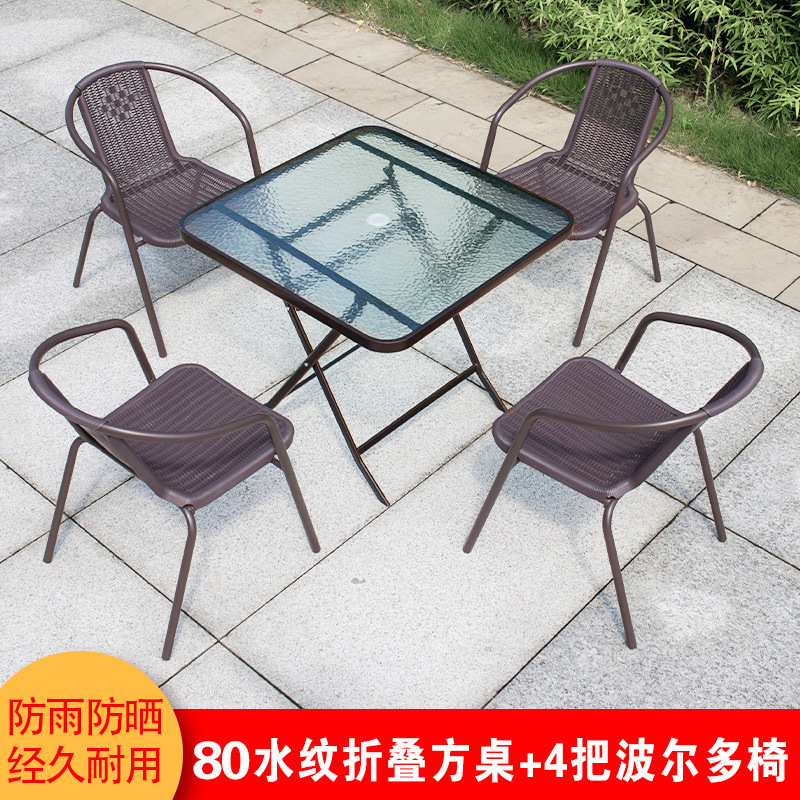 • ☆★80cm 물무늬 강화유리 사각 테이블 + 의자 4개(기본 테이블 상판에는 우산 구멍이 없습니다. 구멍이 있는 경우 준비해야 합니다.)☆★