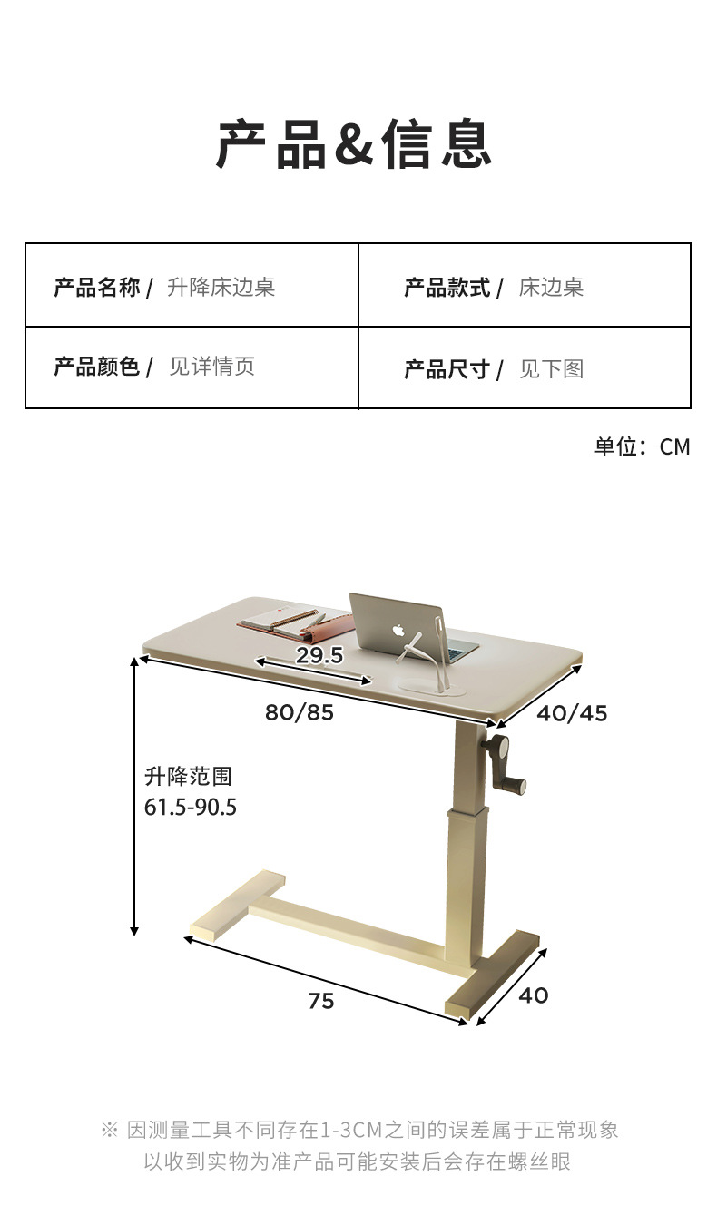 可移动升降床边桌卧室家用电脑桌床上学习桌沙发小桌子笔记本书桌