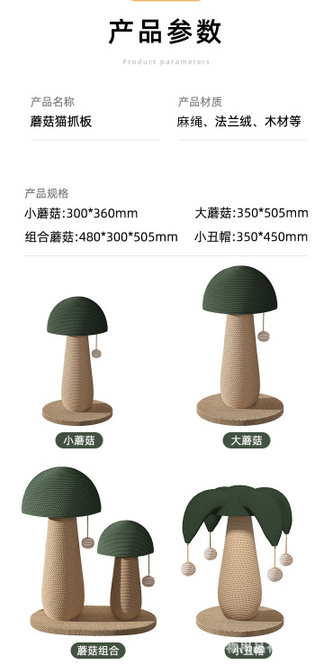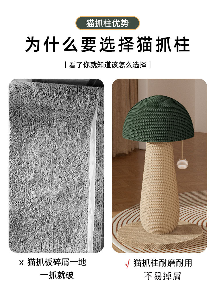 사자풀 고양이 스크래치 컬럼, 버섯 고양이 스크래치 보드, 내마모성 및 부스러기가 잘 생기지 않는 수직 고양이 발톱 보드, 사자풀 로프 발톱 연삭 고양이 장난감