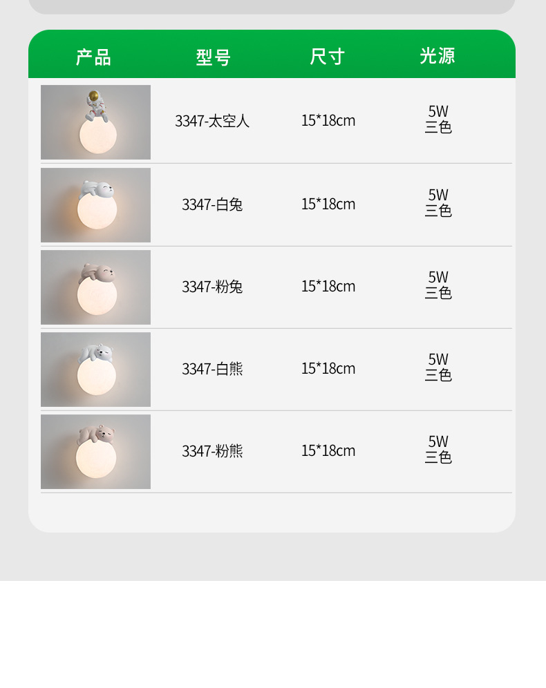 • 3347 벽 램프-흰색 곰 15cm-three-color 빛 변화 5W-Full Spectrum