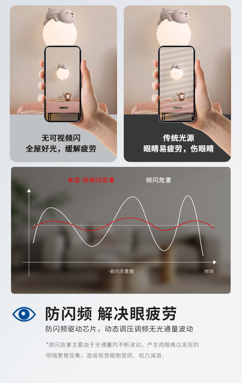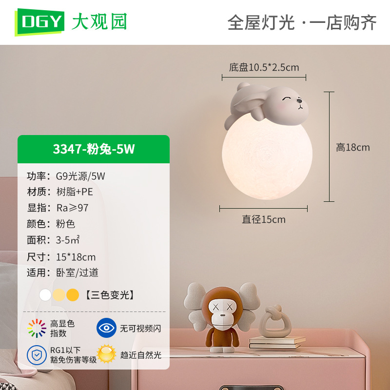 • 3347 벽 램프-핑크 토끼 15cm-tricolor 빛 변화 5 w-full 스펙트럼