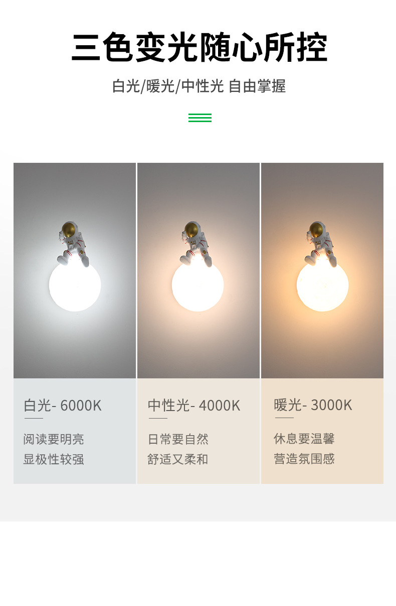 • 3347 벽 램프-우주인 15cm-tricolor 빛 변화 5W-Full Spectrum