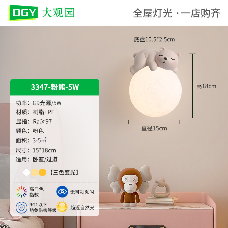 • 3347 벽 램프 핑크 곰 15cm-three-color 빛 변화 5W-Full Spectrum