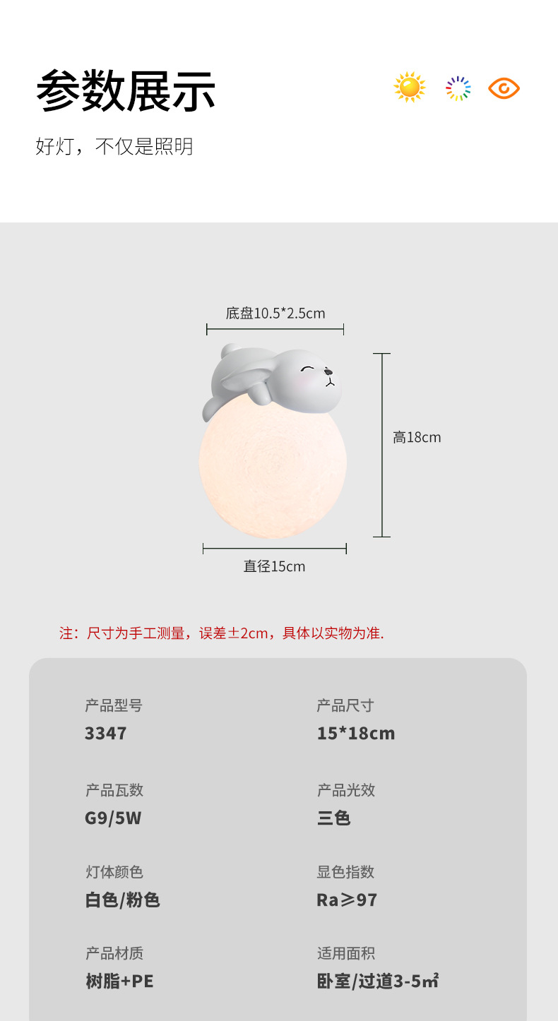 • 3347 벽 램프-흰 토끼 15cm-tricolor 빛 변화 5 w-full 스펙트럼