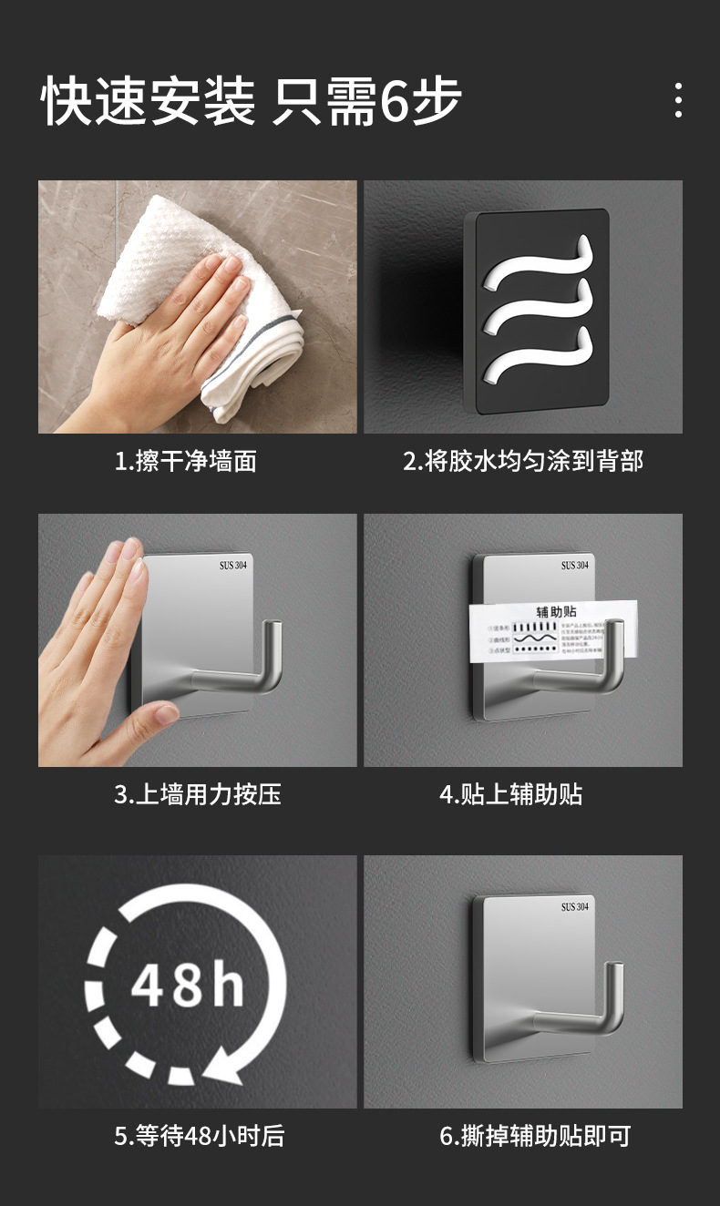 304 스테인레스 스틸 후크 강한 원활한 펀치 프리 스티커 후크 주방 욕실 도어 방수 방습 후크 후크스토어 가기
