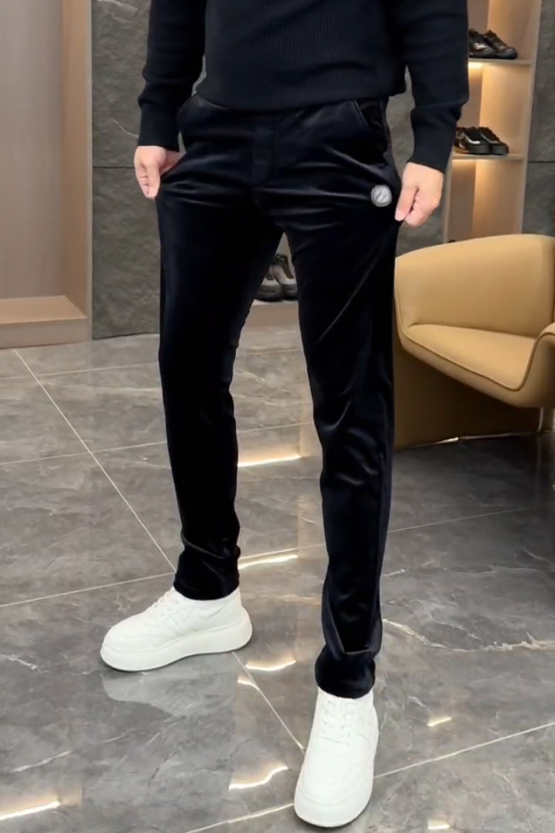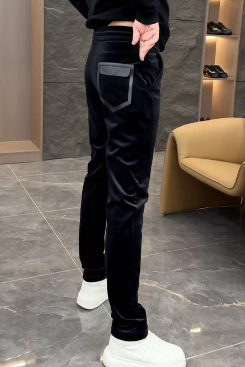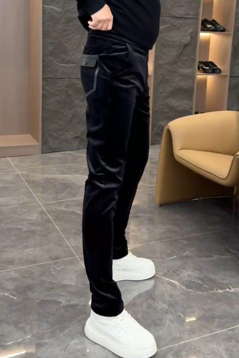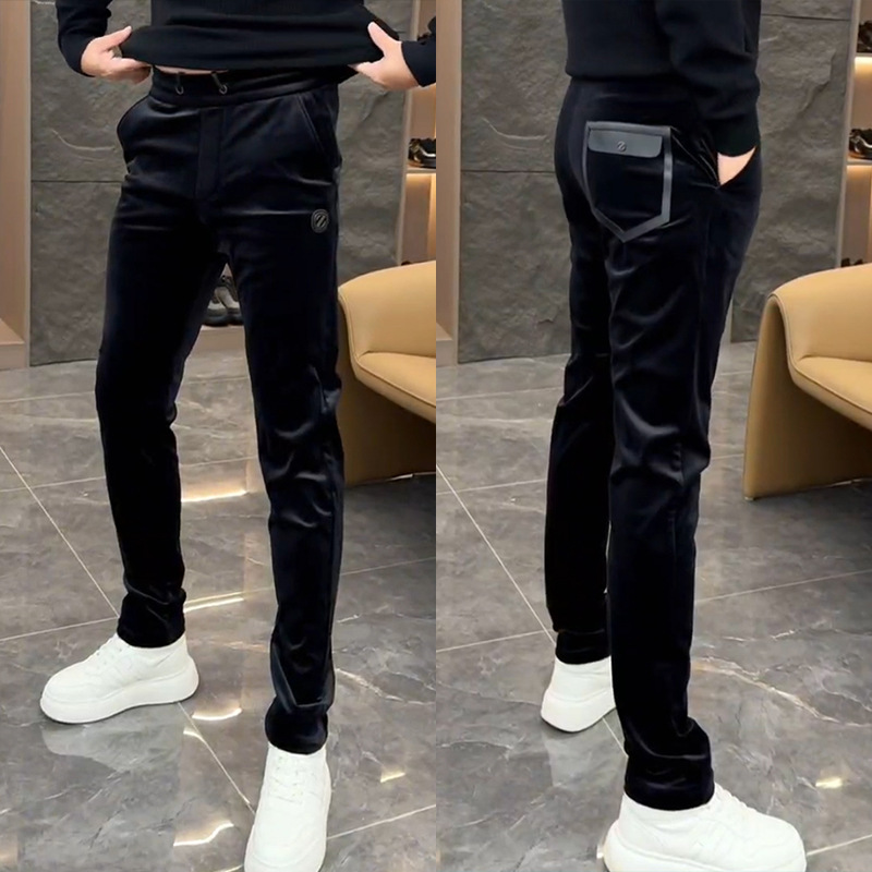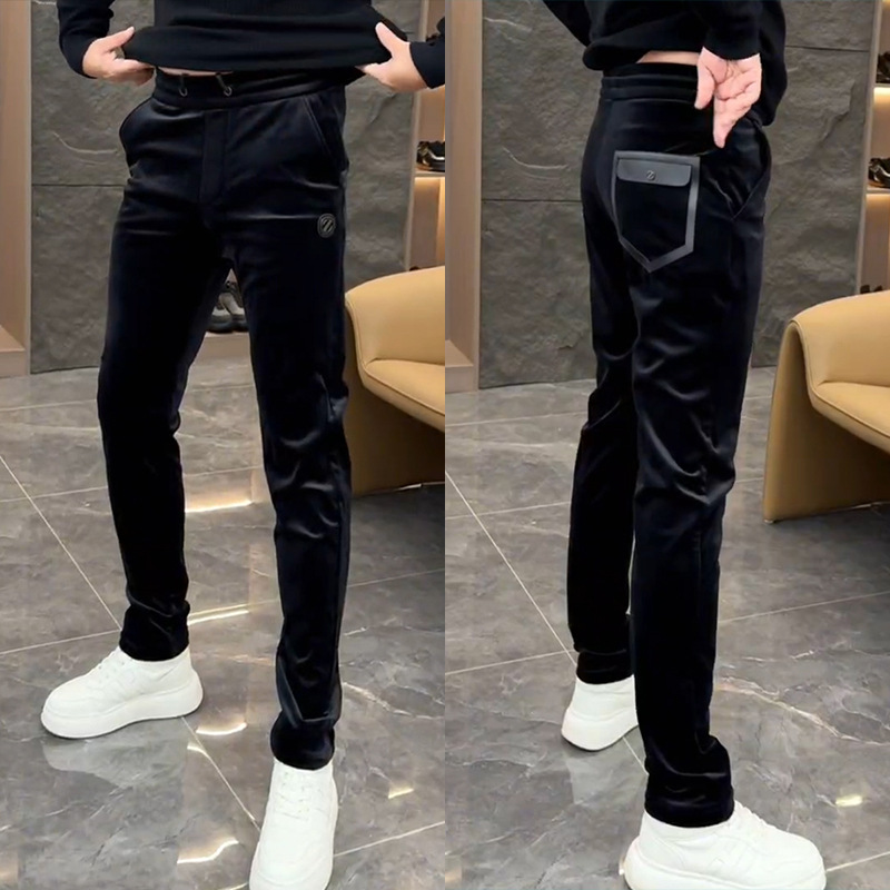겨울 남성 인기 고급 벨벳 스트레치 캐주얼 바지 유행 한국 스타일의 다목적 슬림 핏 단색 스트레이트 바지스토어 가기