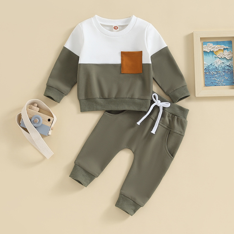 뜨거운 판매 가을과 겨울 대비 땀 레이스 포켓 땀 바지 2 조각 세트 어린이 패션 캐주얼 의류 아기 세트스토어 가기