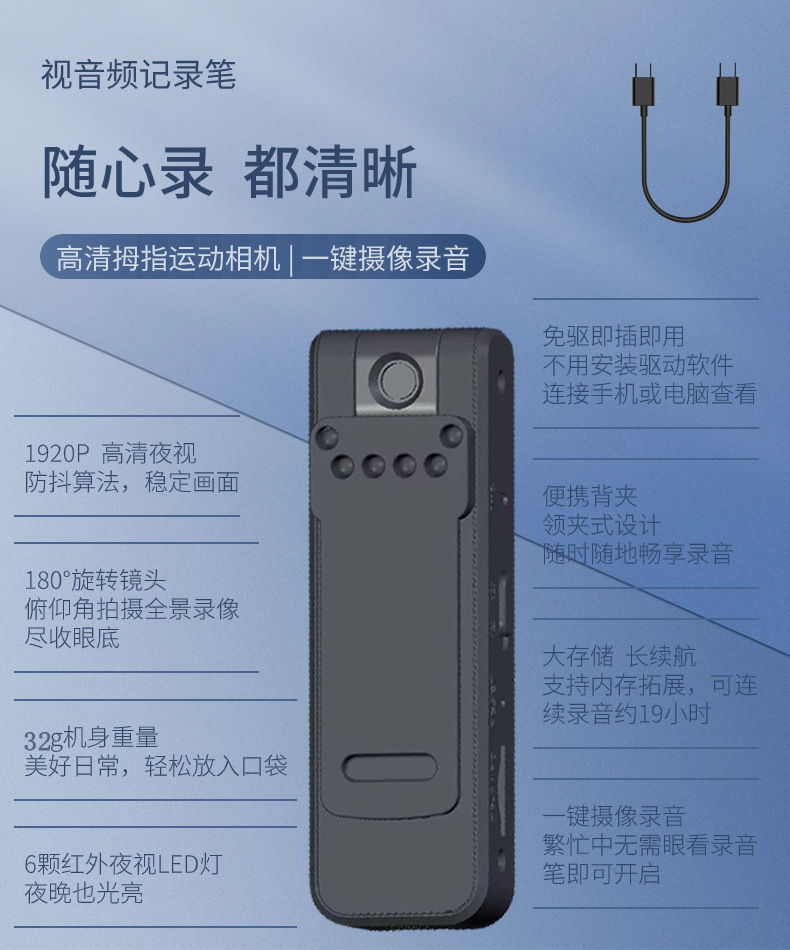 새로운 휴대용 레코더 백 클립 카메라 HD 회의 카메라 적외선 나이트 비전 휴대용 법 집행 기기