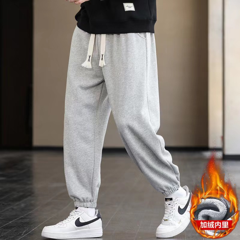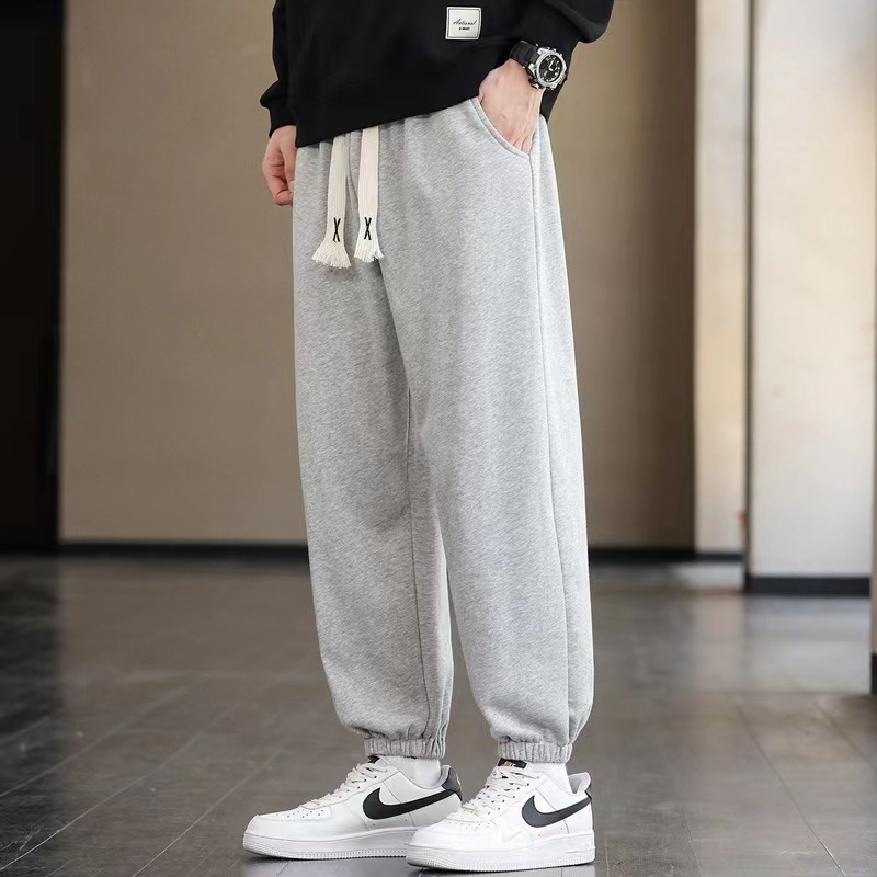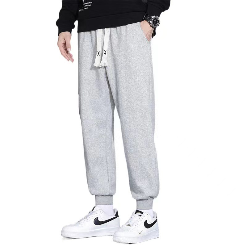 바지 남성 발목에 묶인 스웨트 팬츠 봄과 가을 한국 스타일의 느슨한 회색 스포츠 바지 남성용 새로운 니트 캐주얼 바지