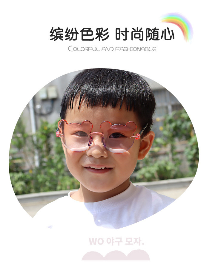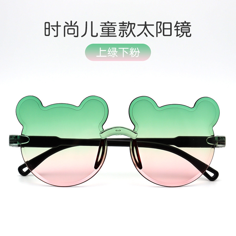 새로운 어린이 선글라스 프레임리스 베어 그라디언트 패션 선글라스 거리 사진 트렌드 UV 보호 선글라스 도매스토어 가기