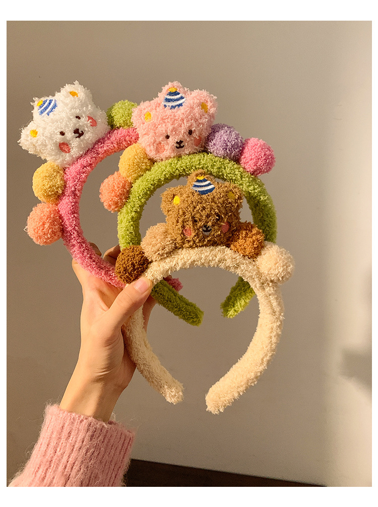 만화 귀여운 곰 머리띠 봉제 얼굴 세척 메이크업 마스크 헤어 밴드 여성 머리띠 헤어 액세서리 머리 장식 새로운