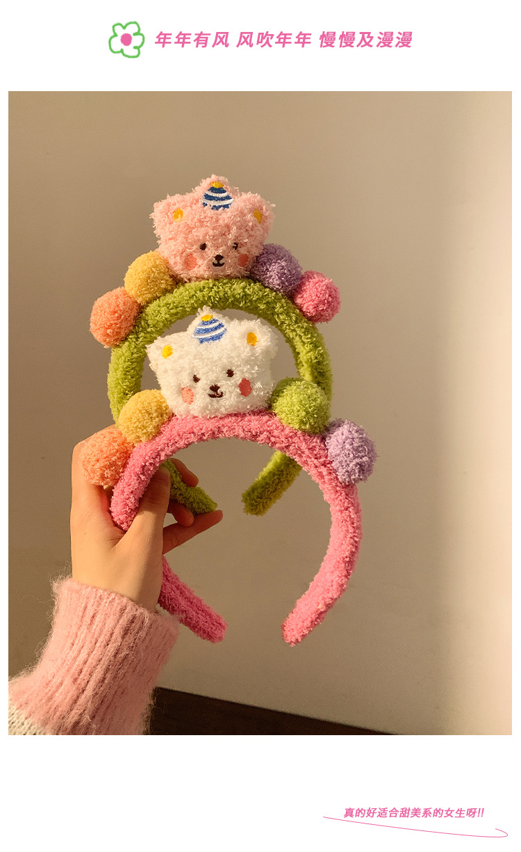 만화 귀여운 곰 머리띠 봉제 얼굴 세척 메이크업 마스크 헤어 밴드 여성 머리띠 헤어 액세서리 머리 장식 새로운스토어 가기